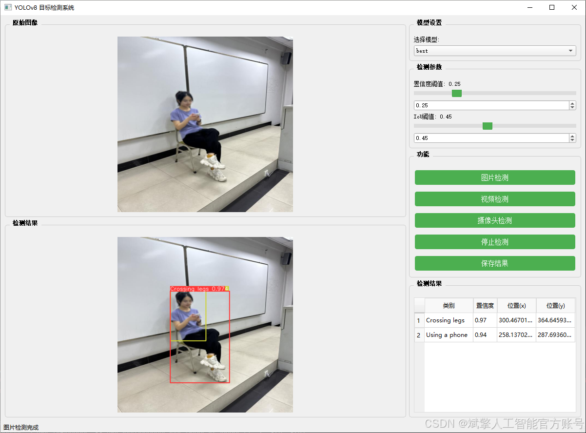✅ 摄像头实时检测:连接USB 摄像头,实现实时监测。
