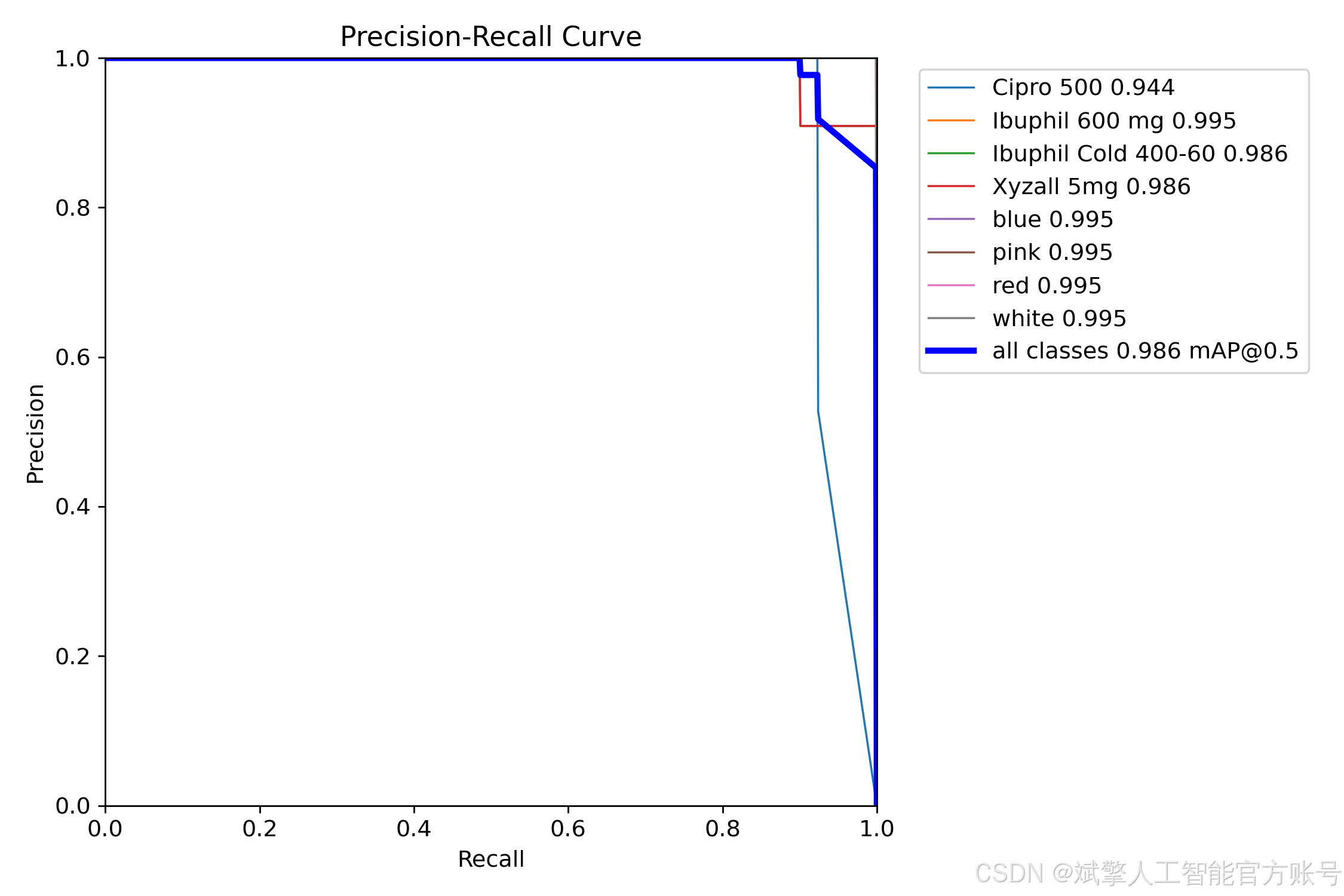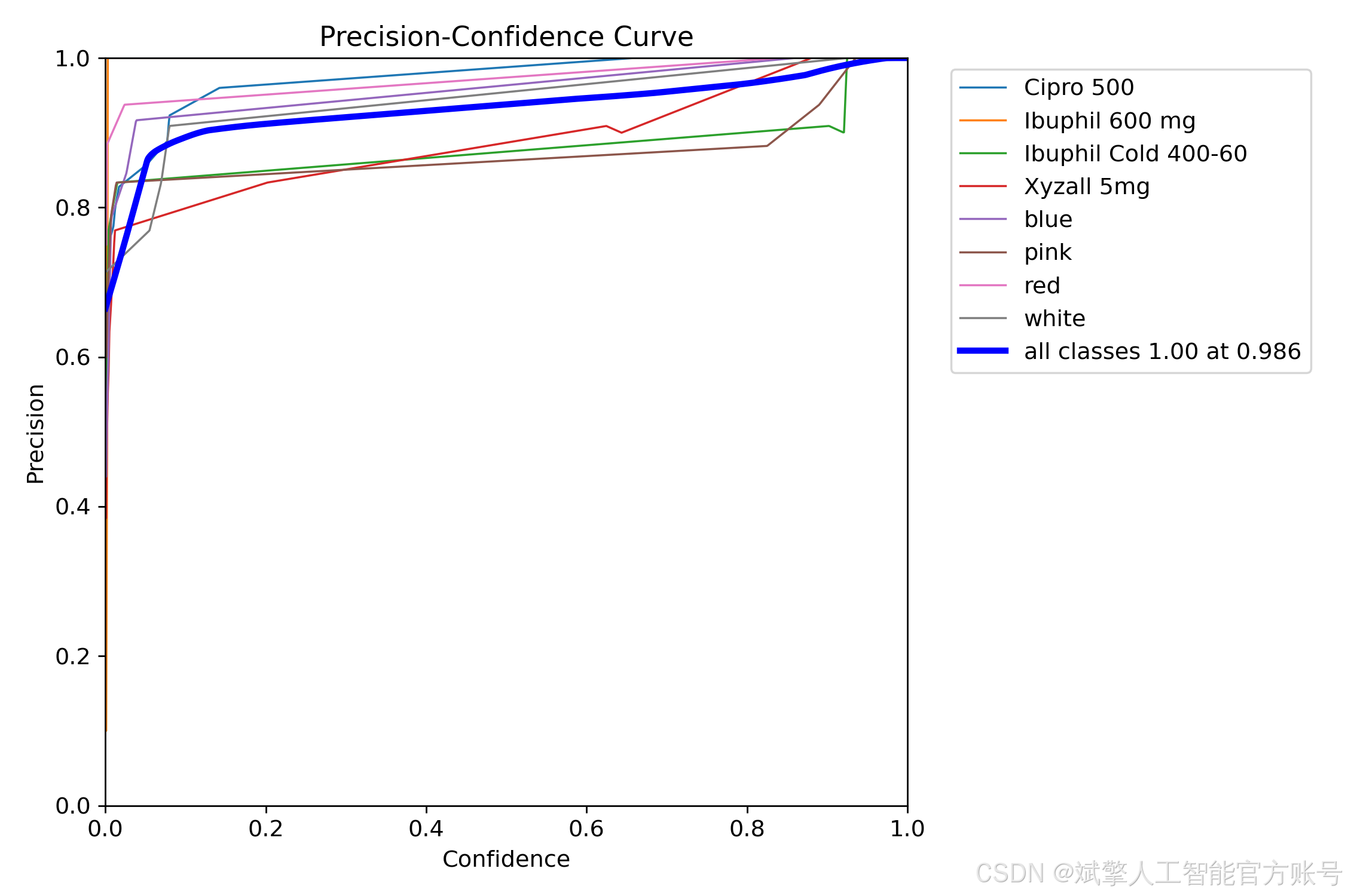 药物识别在医疗保健和药品管理中具有重要意义,但传统方法效率低且易出错。本文提出一种基于深度学习YOLOv11的药物识别检测系统,能够高效准确地识别8类常见药物(包括Cipro 500、Ibuphil 600 mg等)和颜色特征(红、蓝、粉、白)。系统结合YOLOv11算法的高性能检测能力,并集成用户友好的UI界面与登录注册功能。实验表明,该系统在自定义YOLO数据集上表现优异,平均精度(mAP)达98.6%以上,显著提升了药物识别的自动化水平。本项目的Python源码与预训练模型可为医疗智能化应用提供参考。