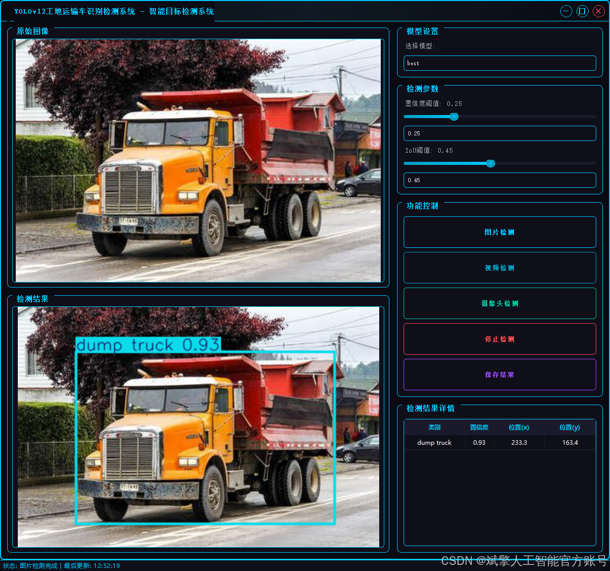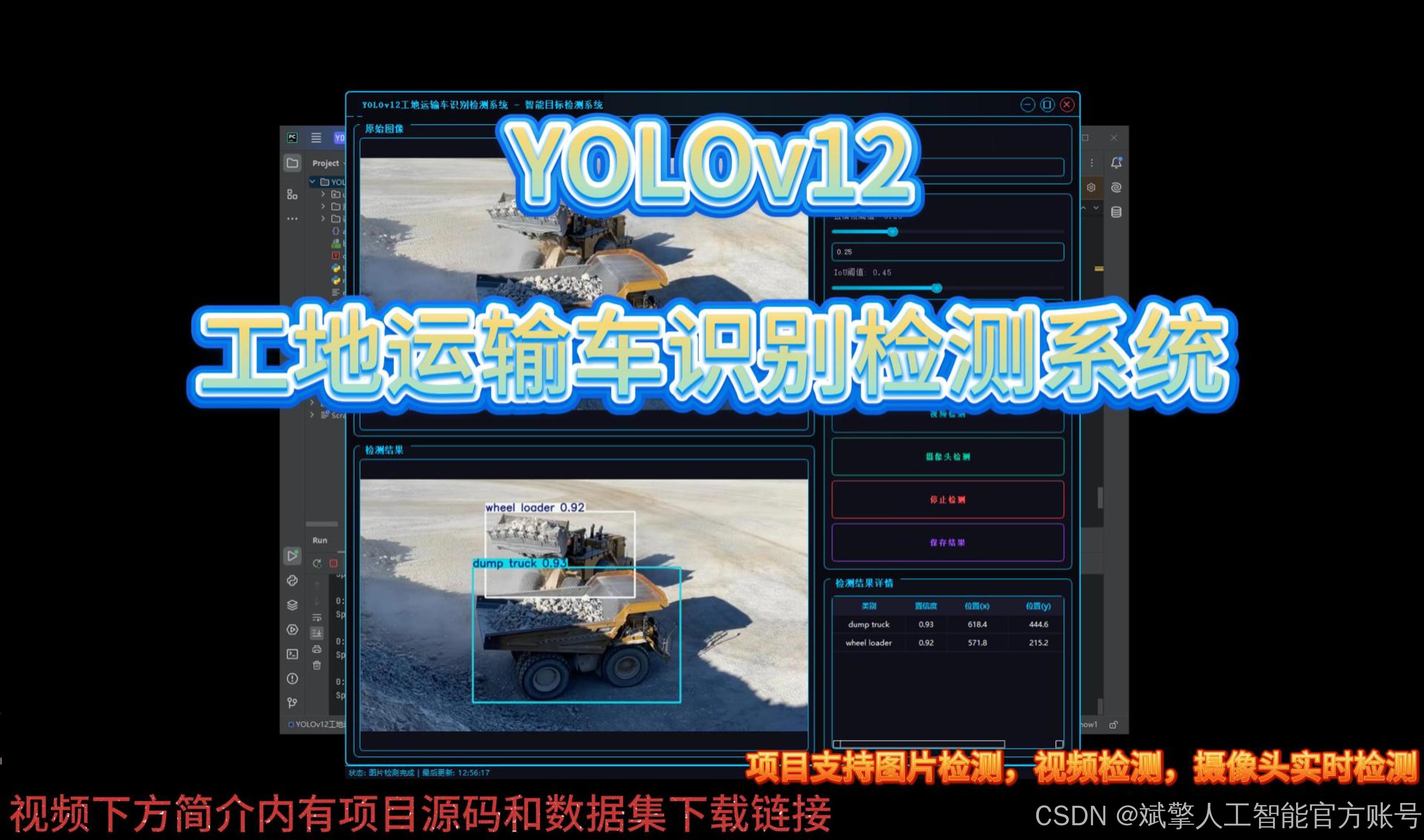 基于深度学习YOLOv12的工地运输车识别检测系统(YOLOv12+YOLO数据集+UI界面+登录注册界面+Python项目源码+模型)_哔哩哔哩_bilibili