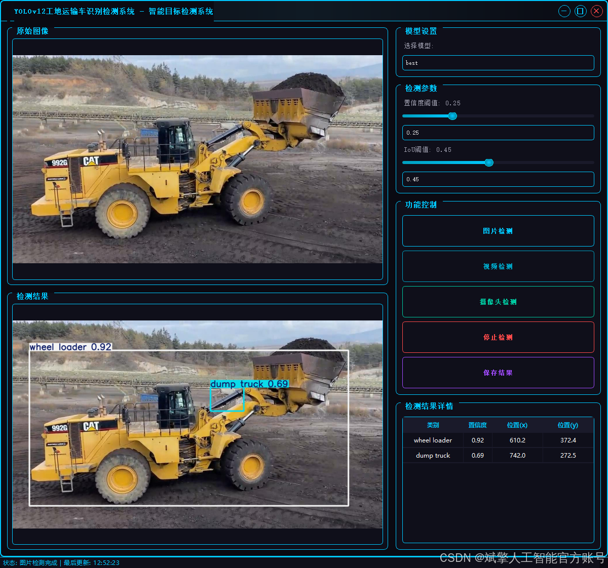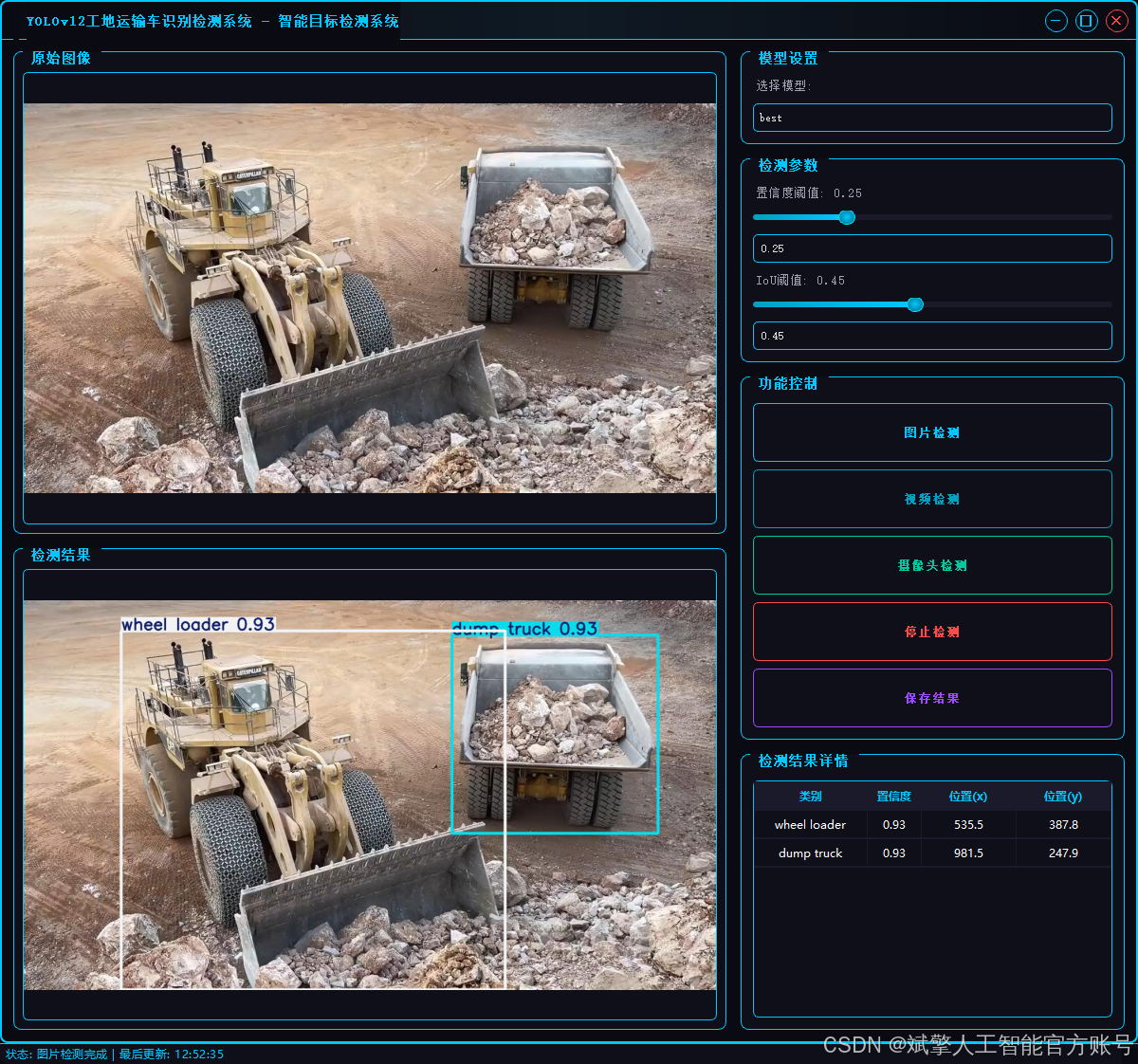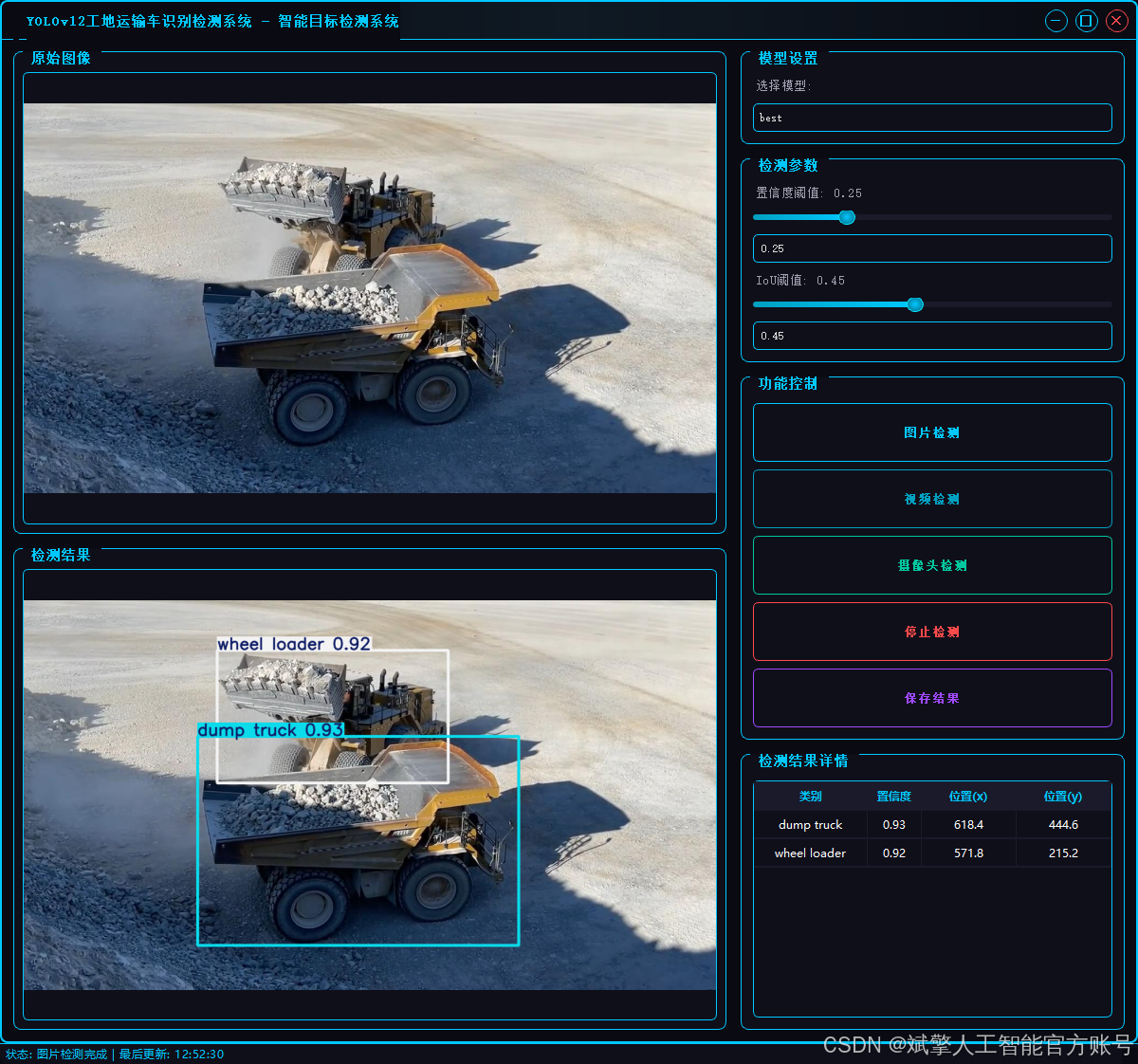 基于深度学习YOLOv12的工地运输车识别检测系统(YOLOv12+YOLO数据集+UI界面+登录注册界面+Python项目源码+模型)