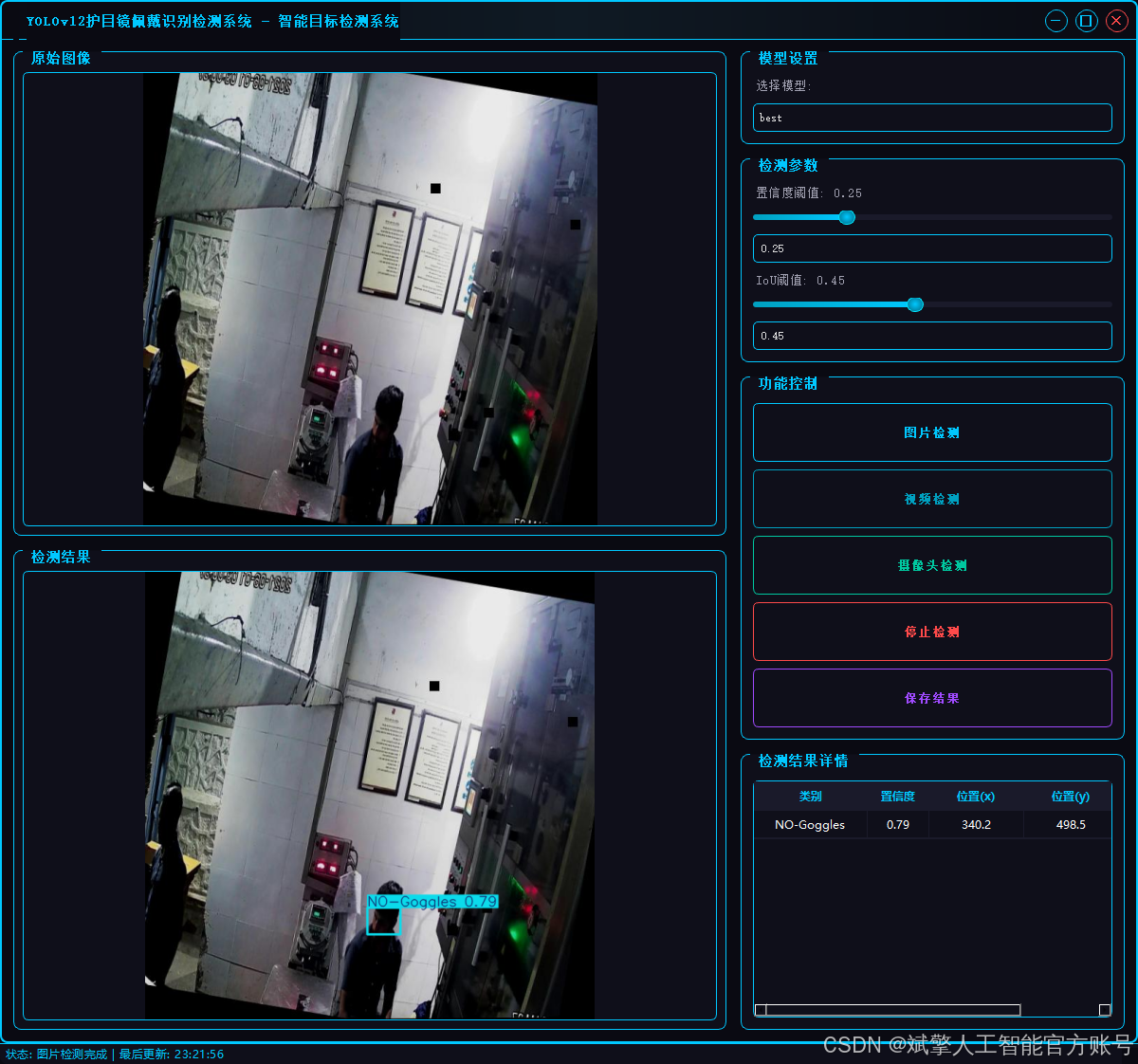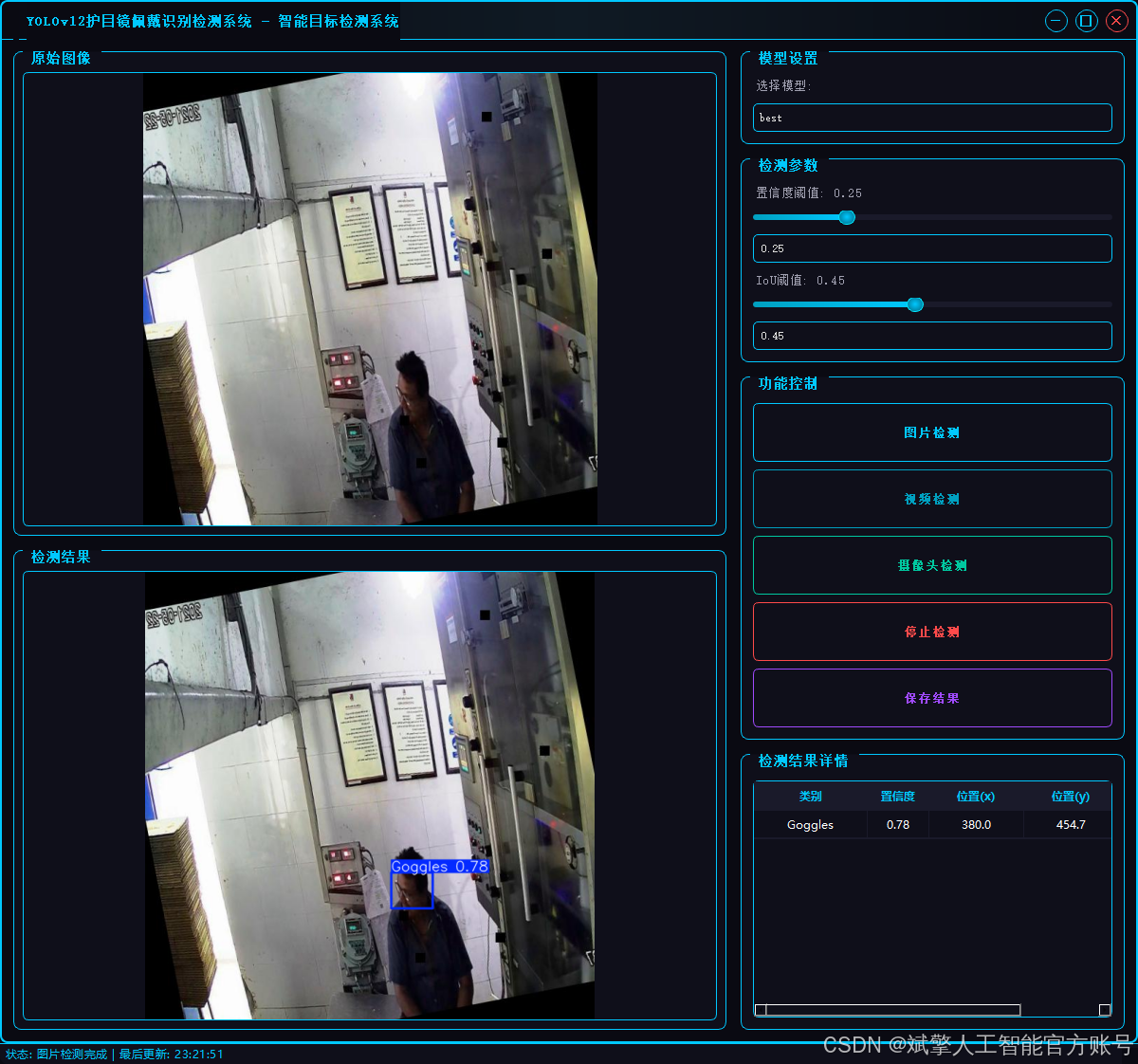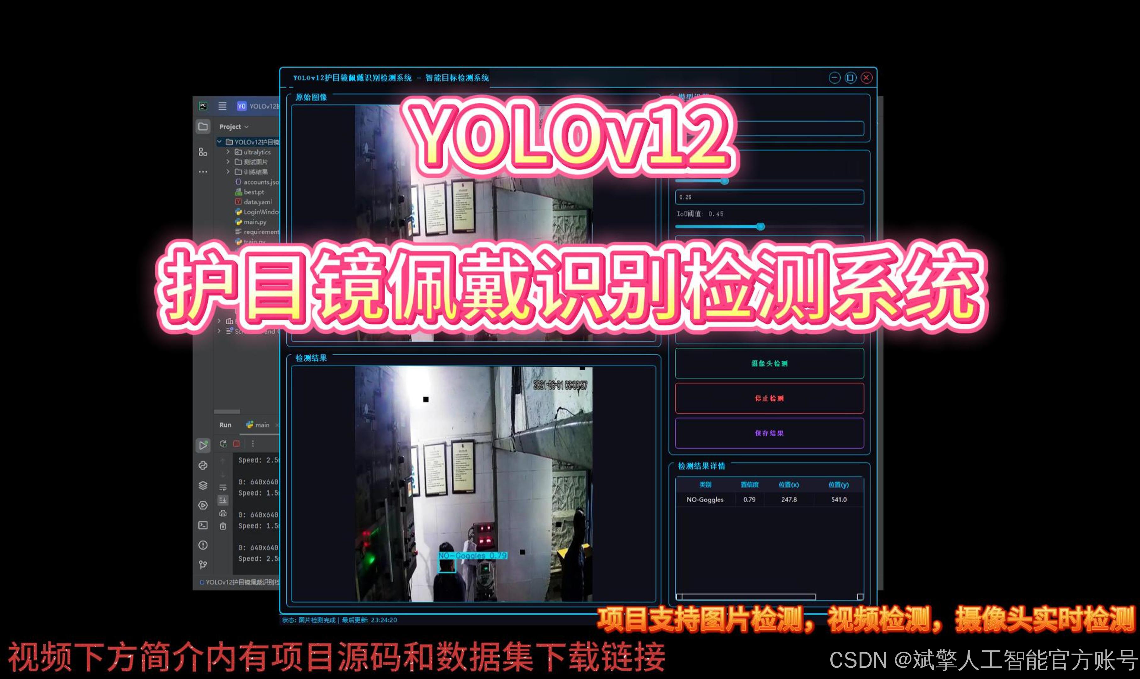 基于深度学习YOLOv12的护目镜佩戴识别检测系统(YOLOv12+YOLO数据集+UI界面+登录注册界面+Python项目源码+模型)