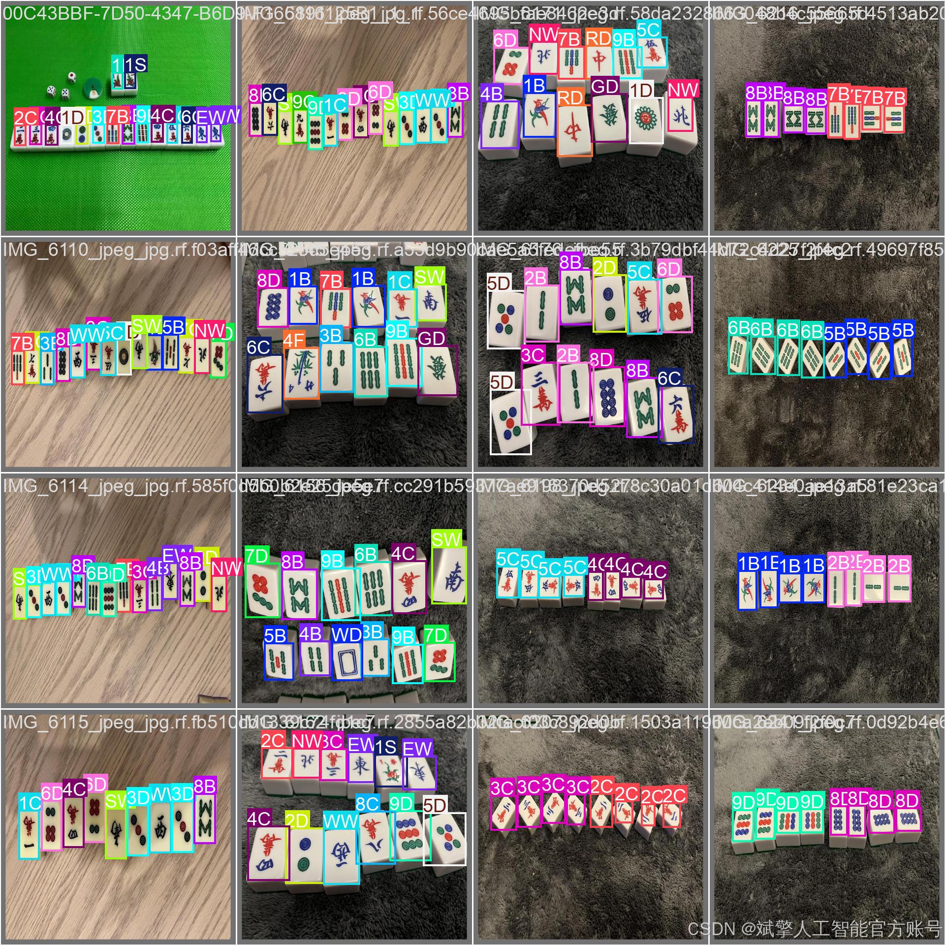 数据集覆盖 万(B)、条(C)、筒(D)、风牌(F)、箭牌(S) 等常见麻将牌型,具体包括:
