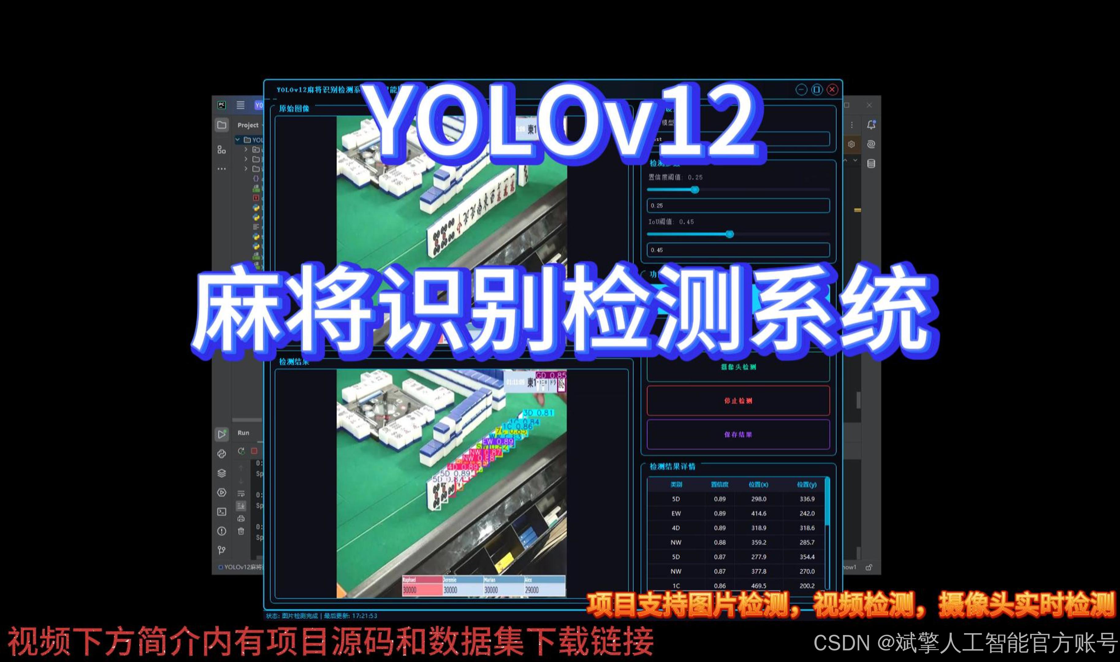 基于深度学习YOLOv12的麻将识别检测系统(YOLOv12+YOLO数据集+UI界面+登录注册界面+Python项目源码+模型)