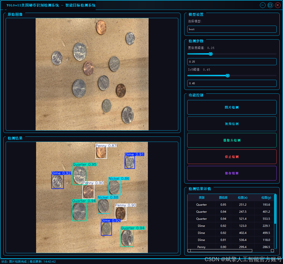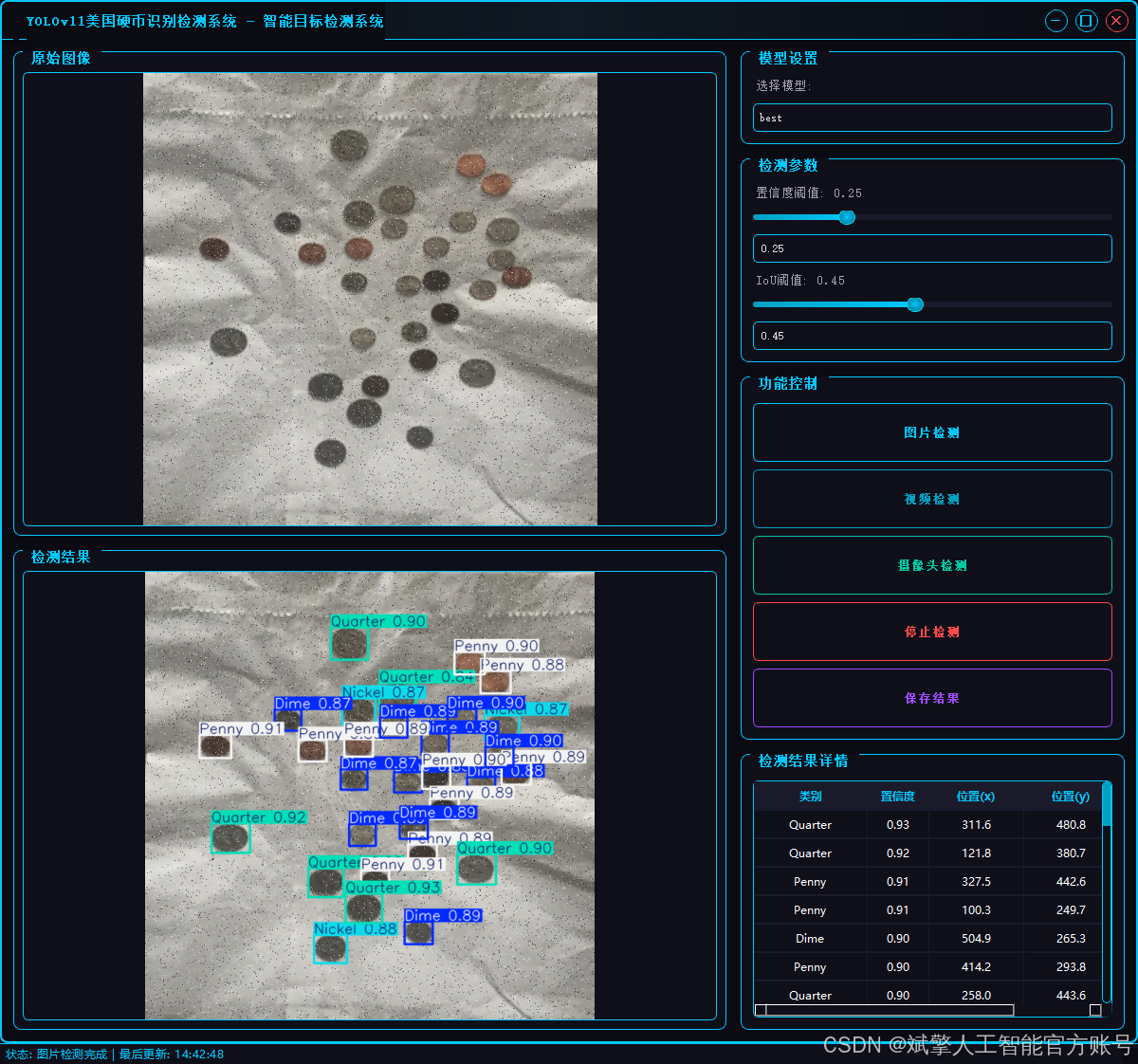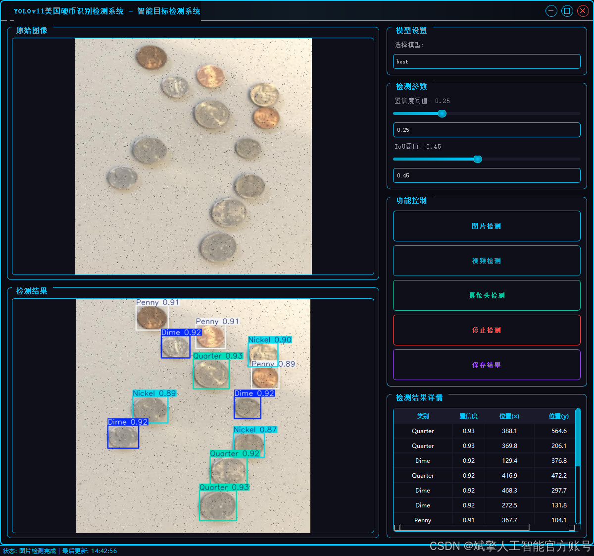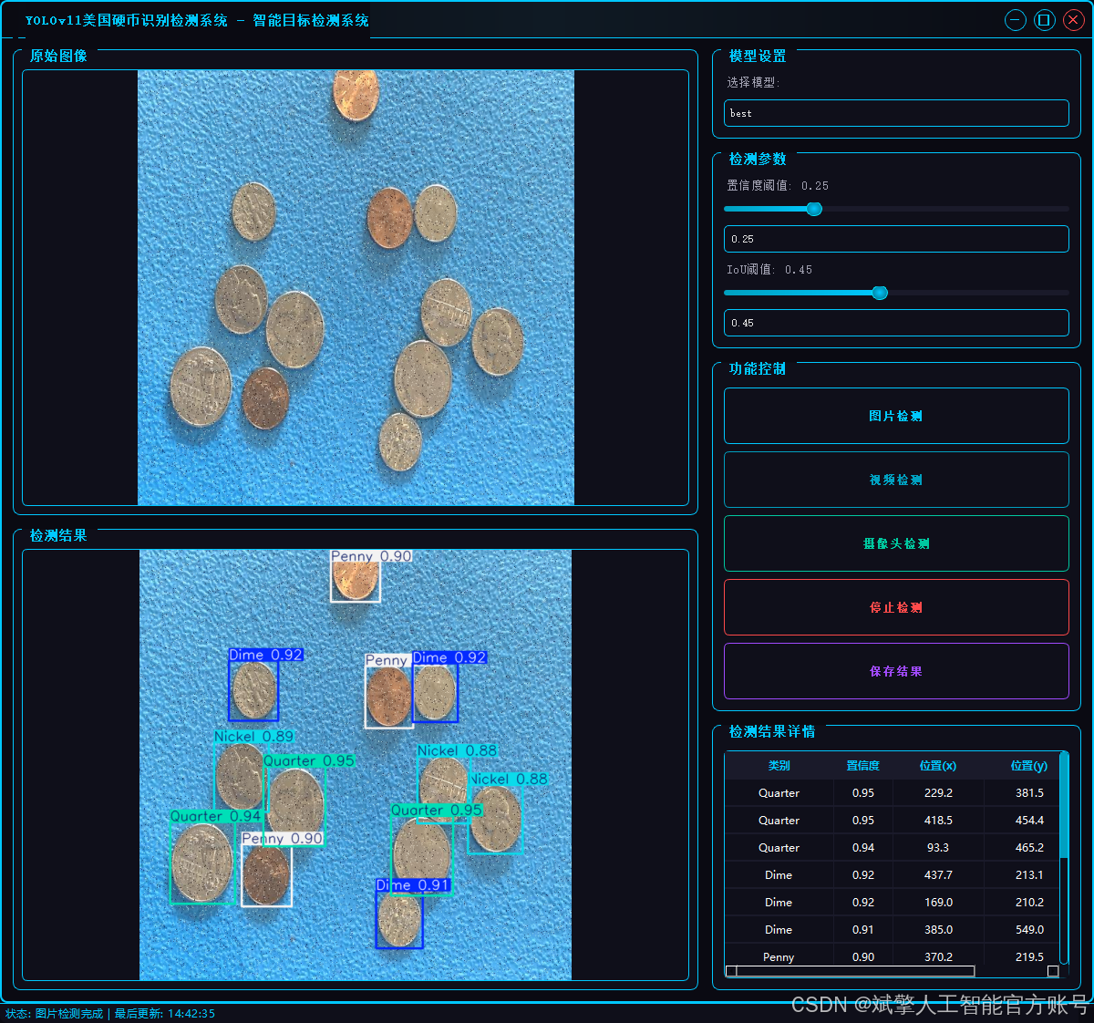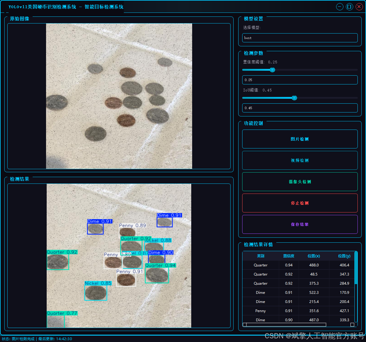 基于深度学习YOLOv11的美国硬币识别检测系统(YOLOv11+YOLO数据集+UI界面+登录注册界面+Python项目源码+模型)_哔哩哔哩_bilibili