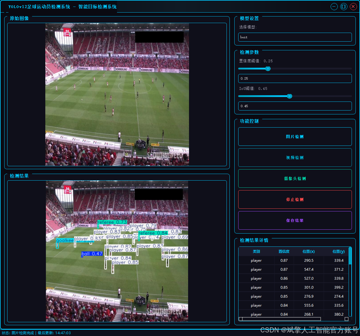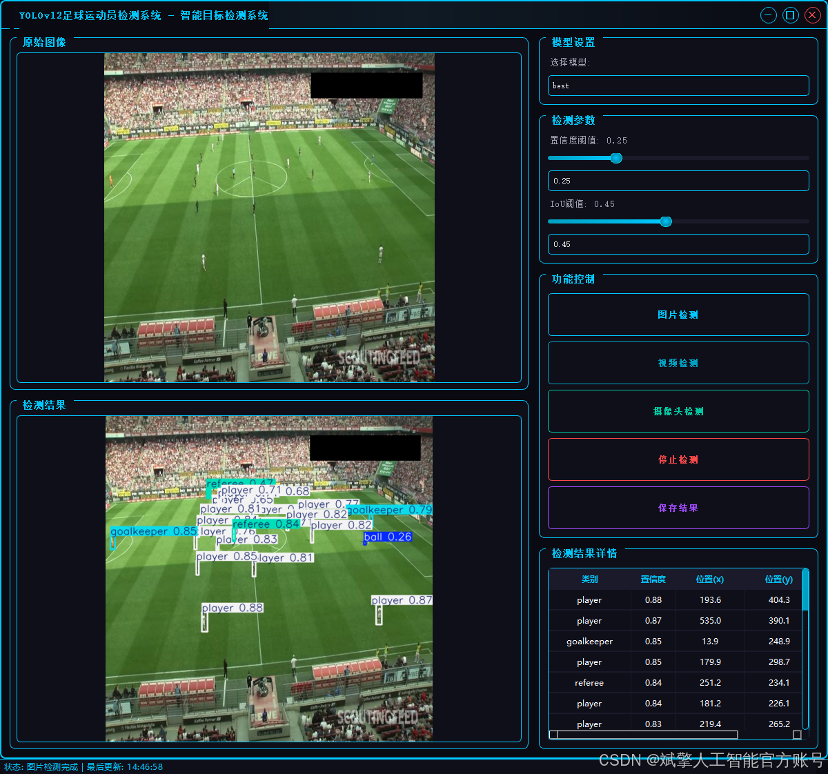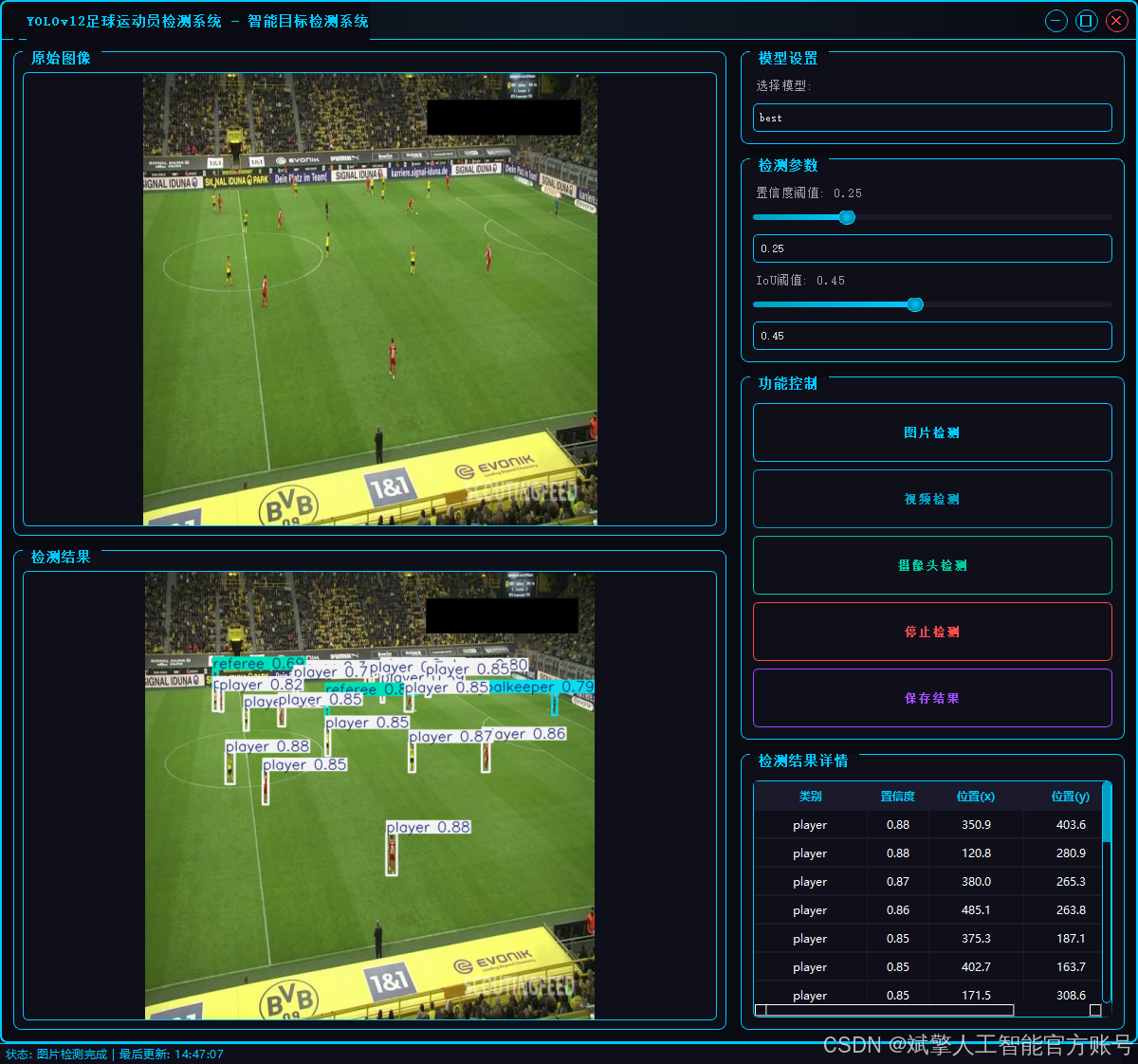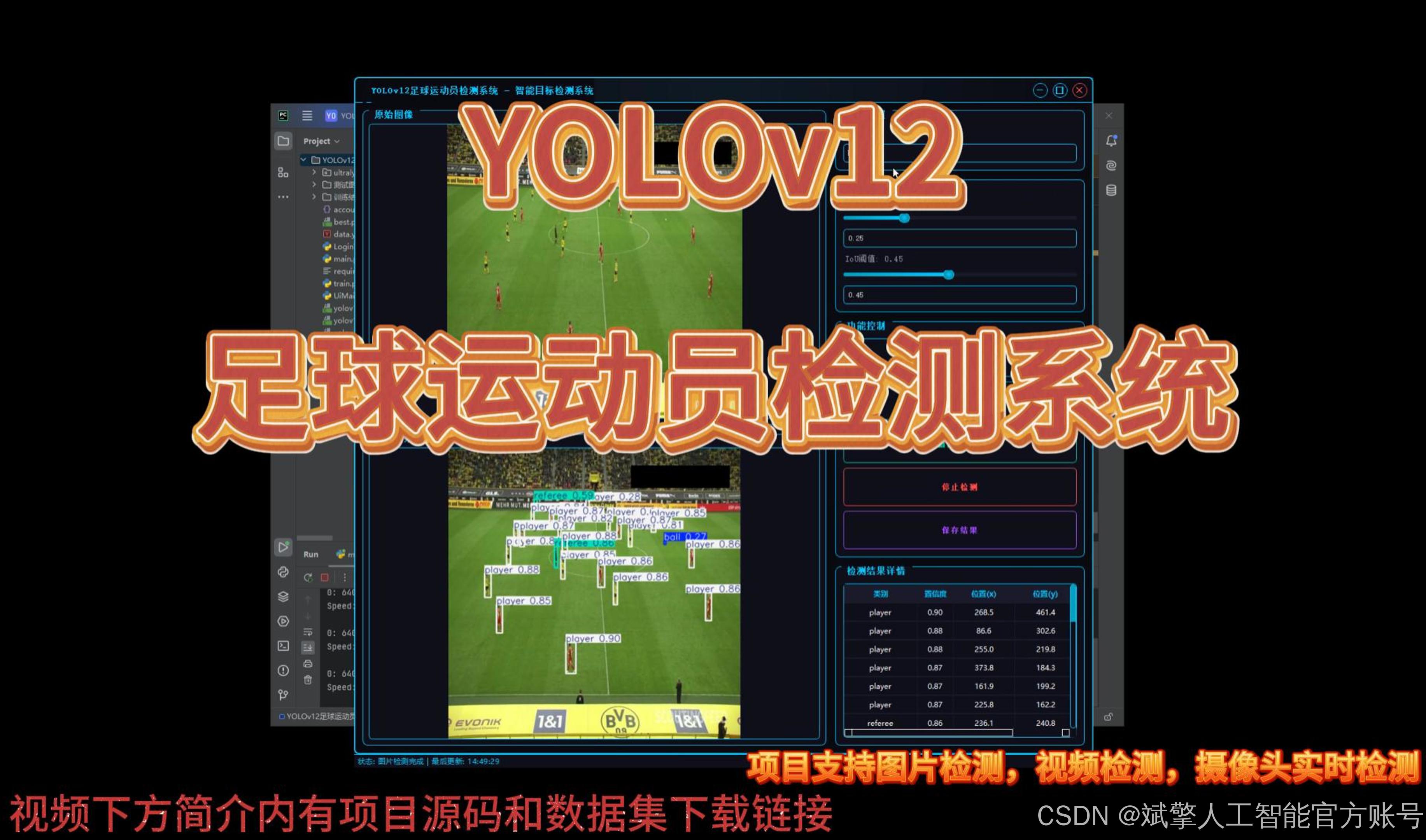 基于深度学习YOLOv12的足球运动员检测系统(YOLOv12+YOLO数据集+UI界面+登录注册界面+Python项目源码+模型)