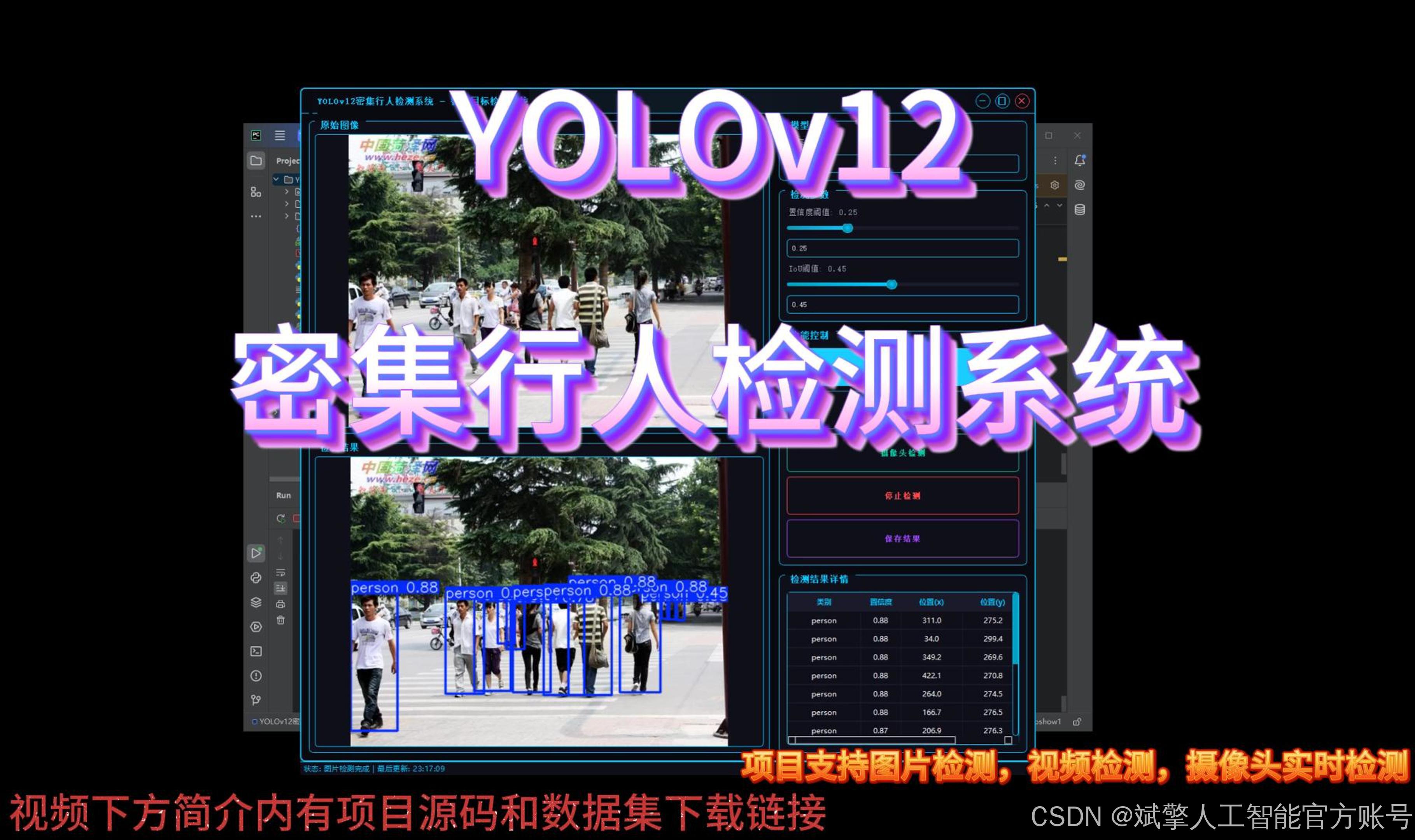 基于深度学习YOLOv12的密集行人识别检测系统(YOLOv12+YOLO数据集+UI界面+登录注册界面+Python项目源码+模型)_哔哩哔哩_bilibili