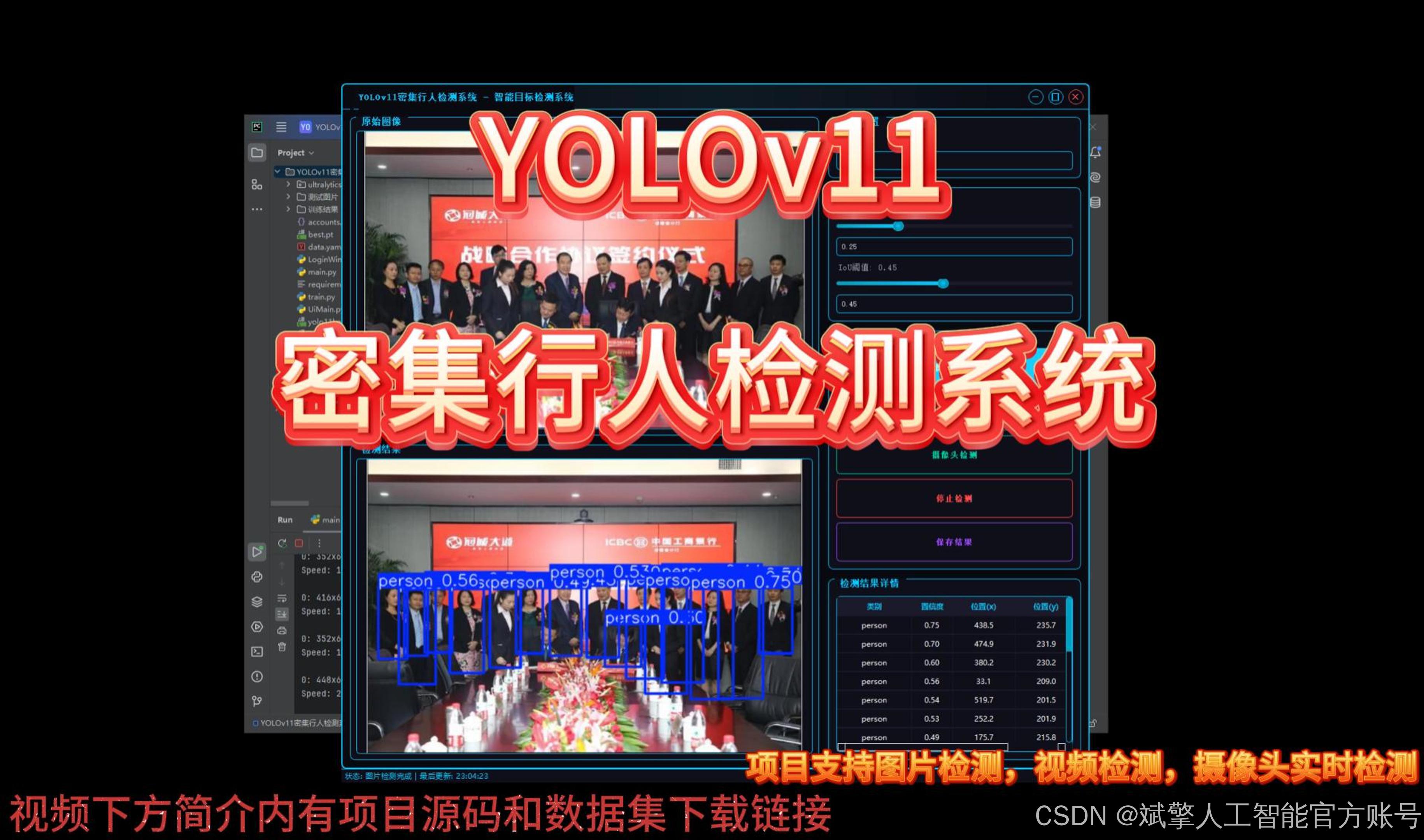 基于深度学习YOLOv11的密集行人识别检测系统(YOLOv11+YOLO数据集+UI界面+登录注册界面+Python项目源码+模型)_哔哩哔哩_bilibili