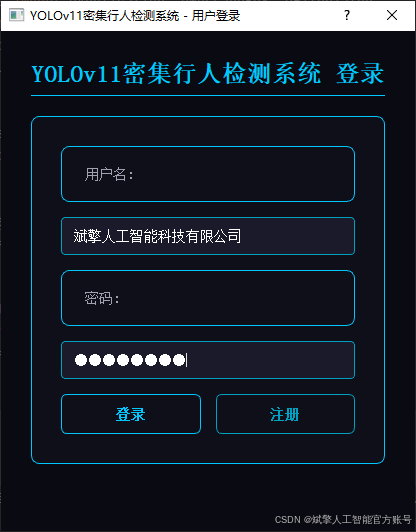 系统创新性地集成了UI界面与用户管理模块(登录/注册),提升了实用性和可操作性。系统在密集行人场景中实现了更高的检测准确率与鲁棒性。此外,本文提供了完整的项目源码和预训练模型,便于研究者复现和进一步开发。实验验证表明,该系统在复杂环境下仍能保持稳定的性能,为实际应用提供了可靠的技术支持。未来,该系统可扩展至多目标检测、行为分析等更广泛的场景中。