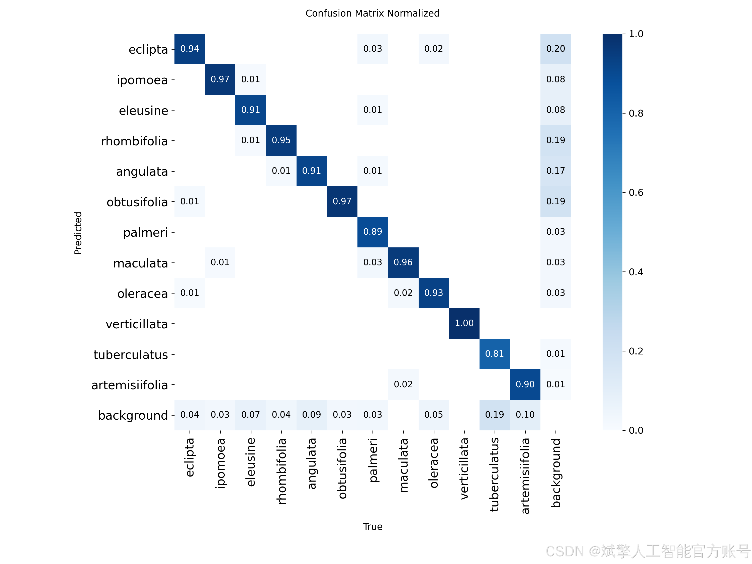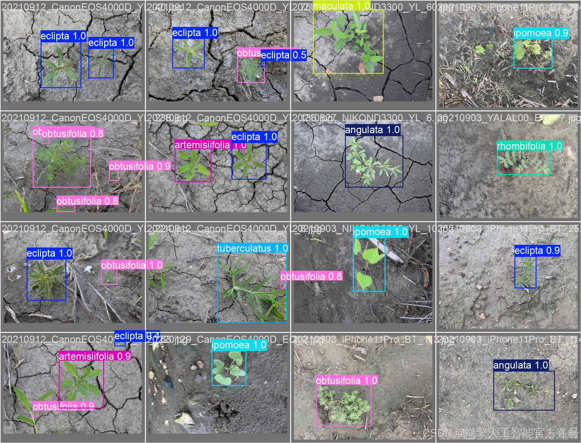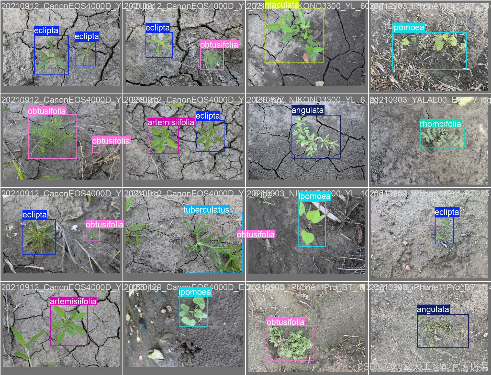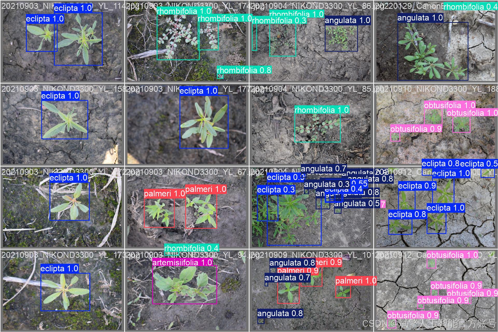 本研究所使用的杂草检测数据集包含 12 个不同类别的杂草,分别为: