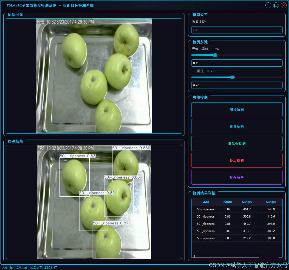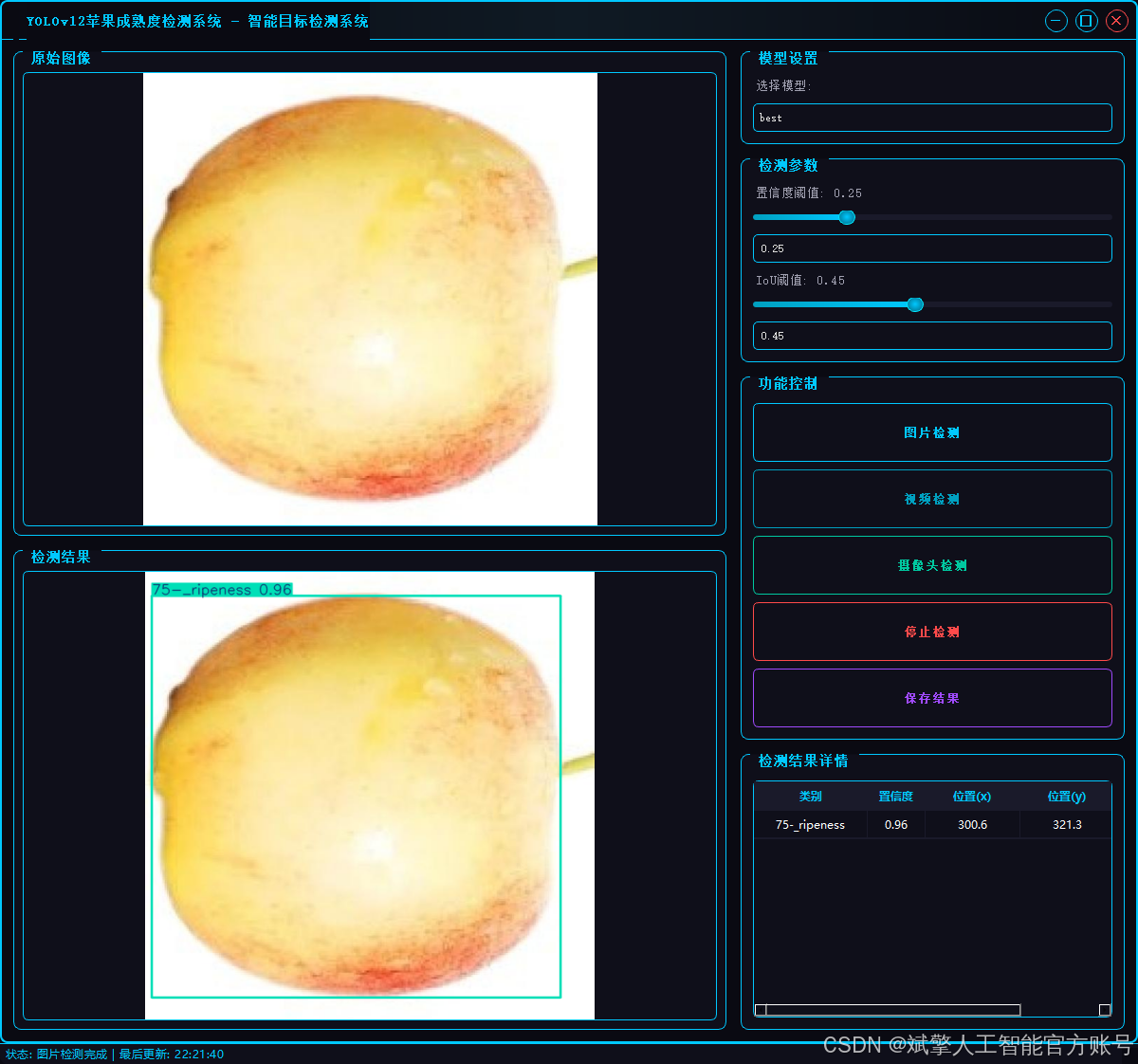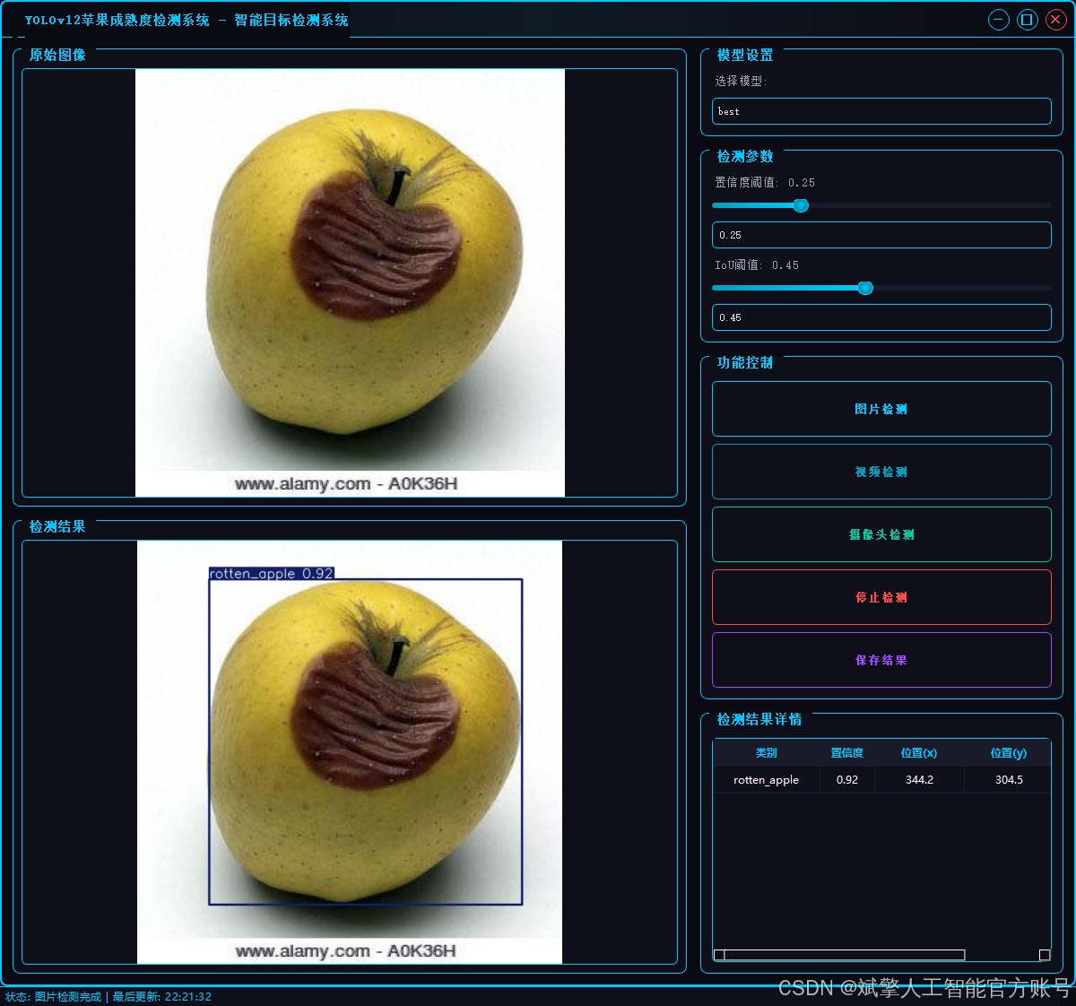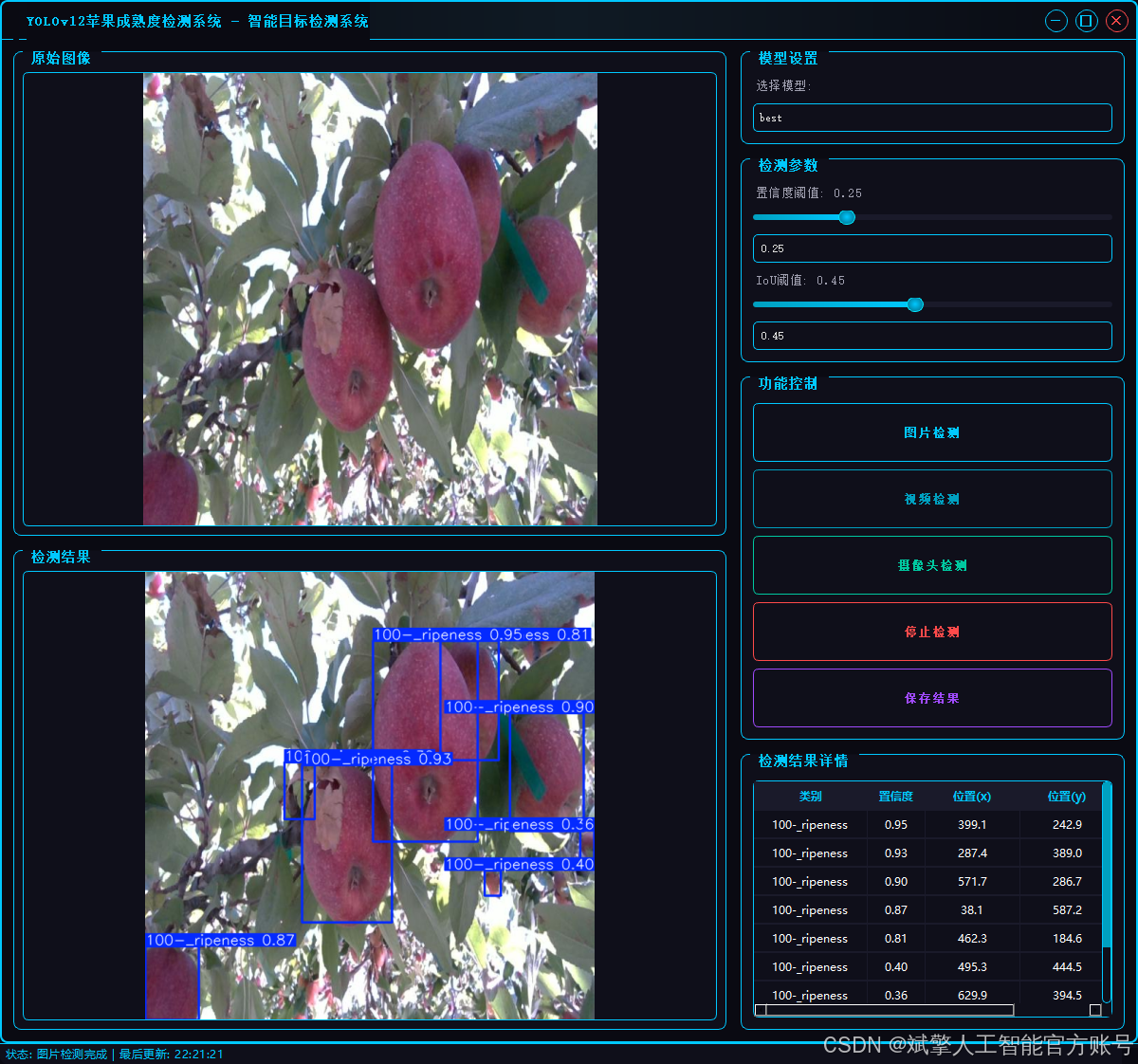 基于深度学习YOLOv12的苹果成熟度识别检测系统(YOLOv12+YOLO数据集+UI界面+登录注册界面+Python项目源码+模型)_哔哩哔哩_bilibili