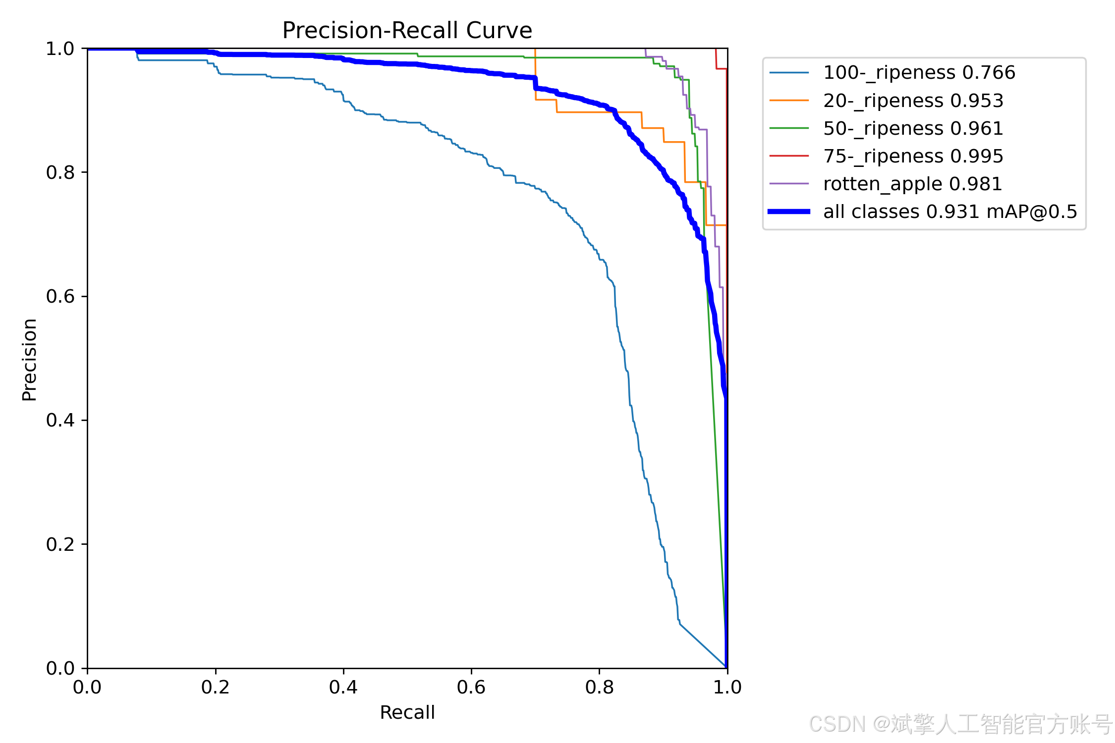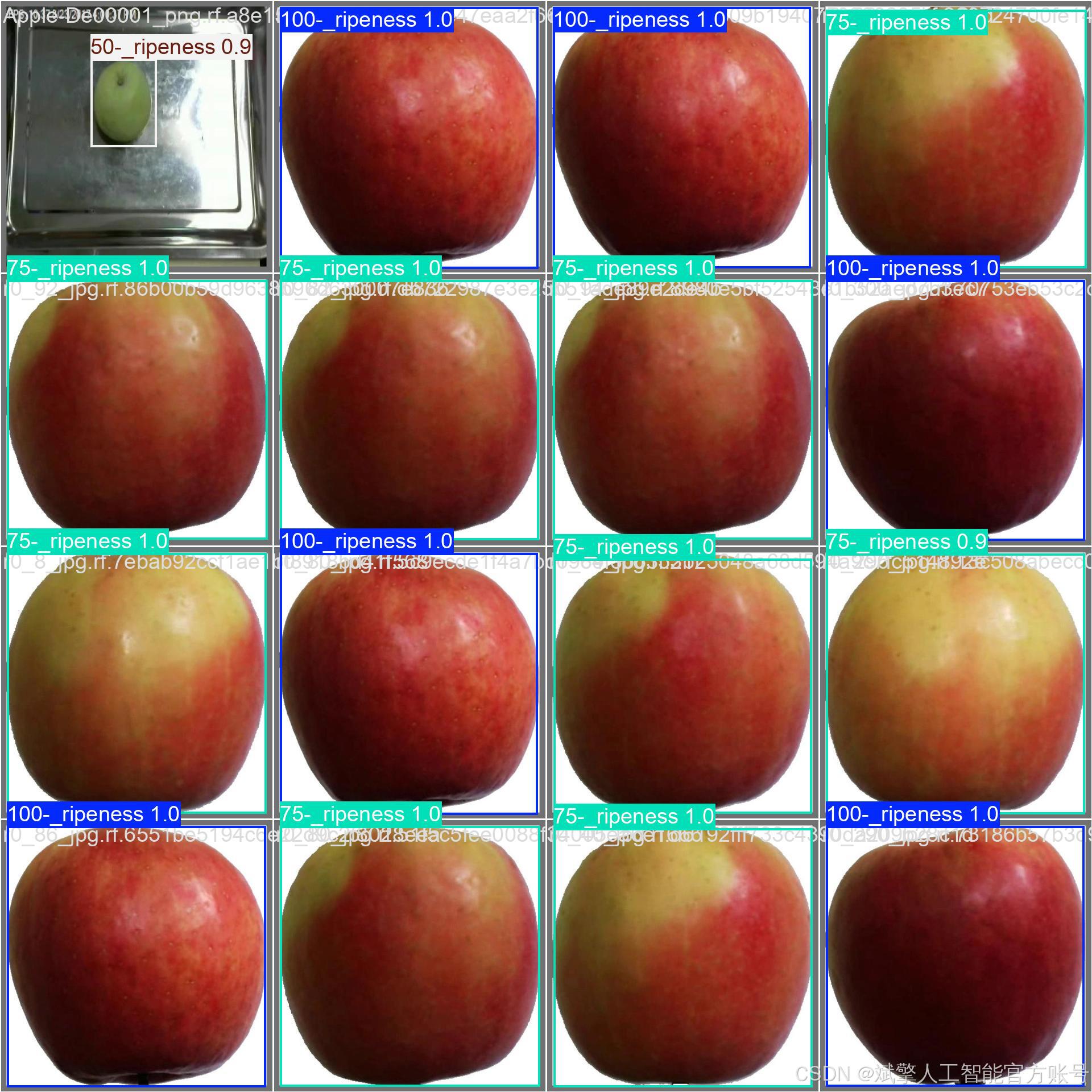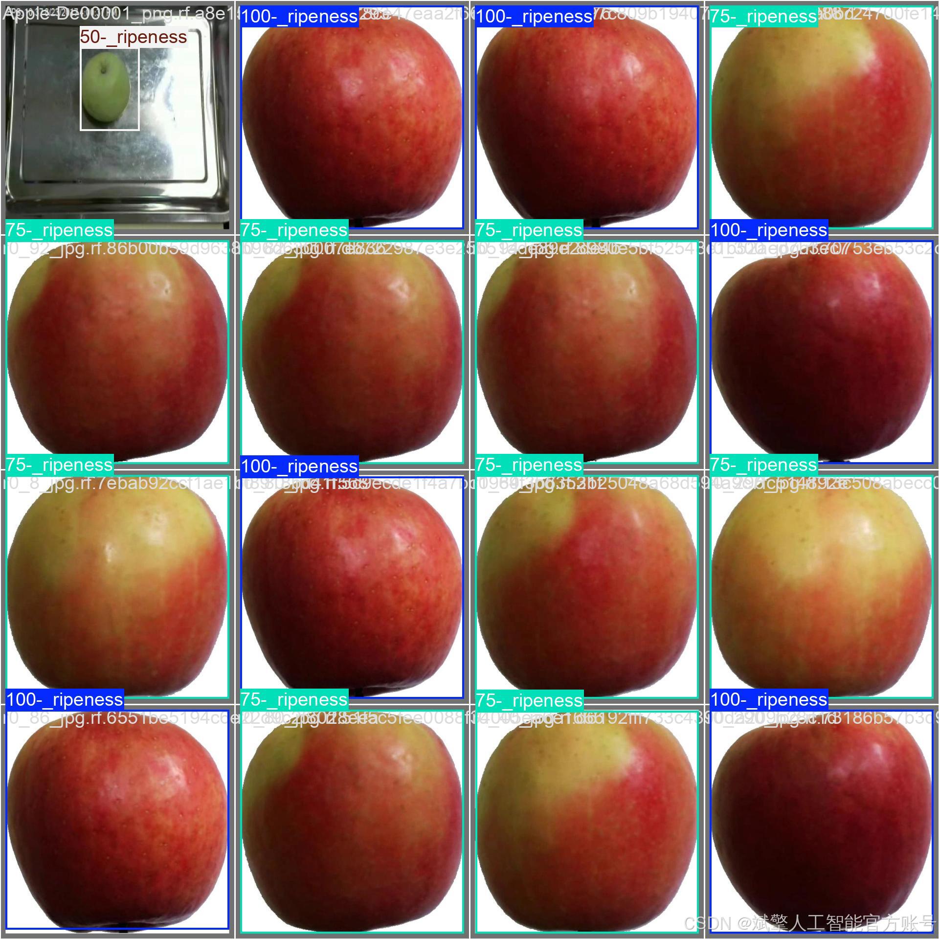 苹果成熟度检测在农业自动化、智能采摘和供应链管理中具有重要意义。传统依赖人工观察或机械传感器的方法效率低、成本高,且易受主观性影响。近年来,基于深度学习的目标检测技术(如YOLO系列模型)在农业领域展现出巨大潜力,但其在细粒度成熟度分类(如20%、50%、75%、100%成熟及腐烂)中的应用仍需进一步优化。