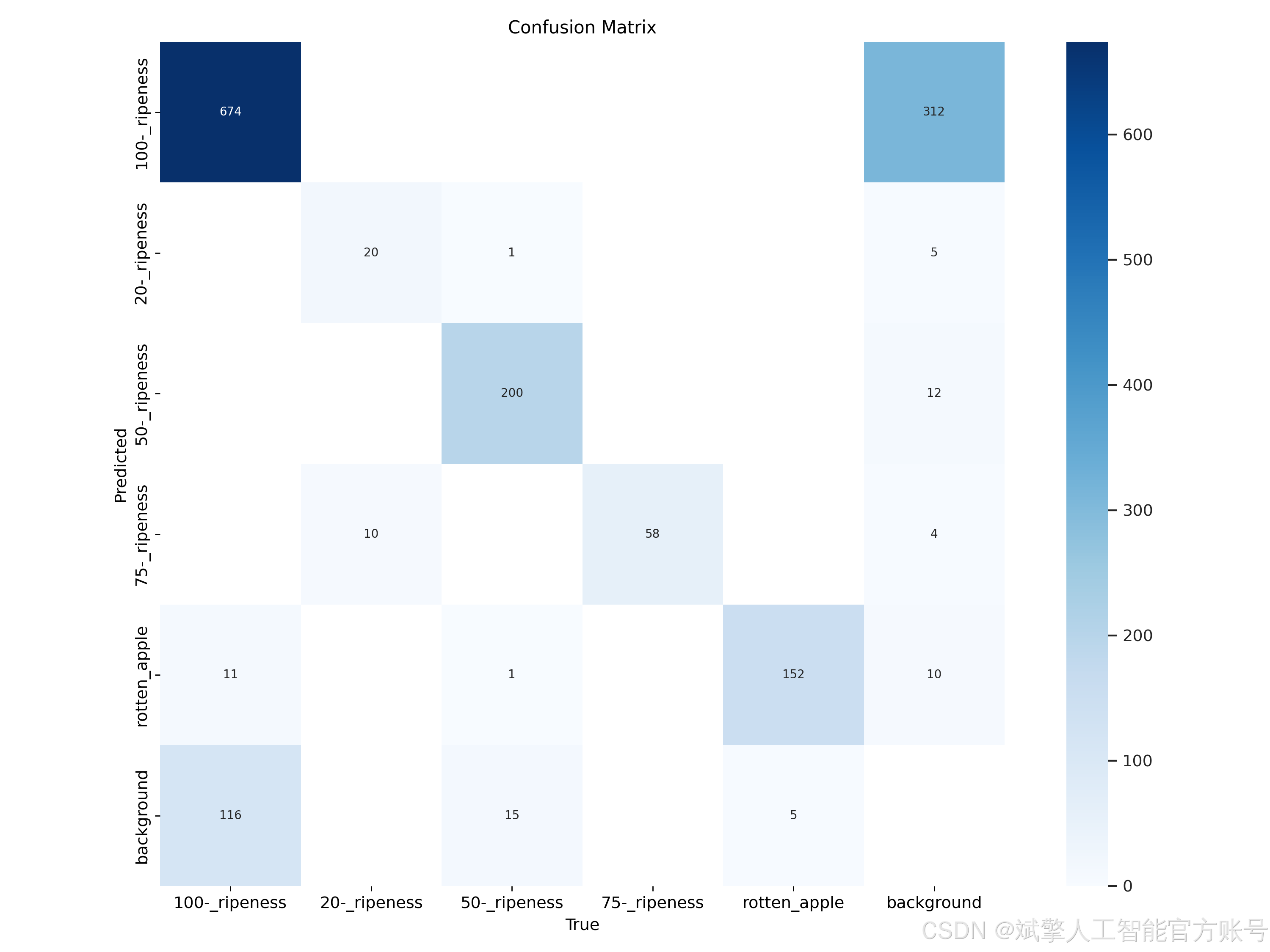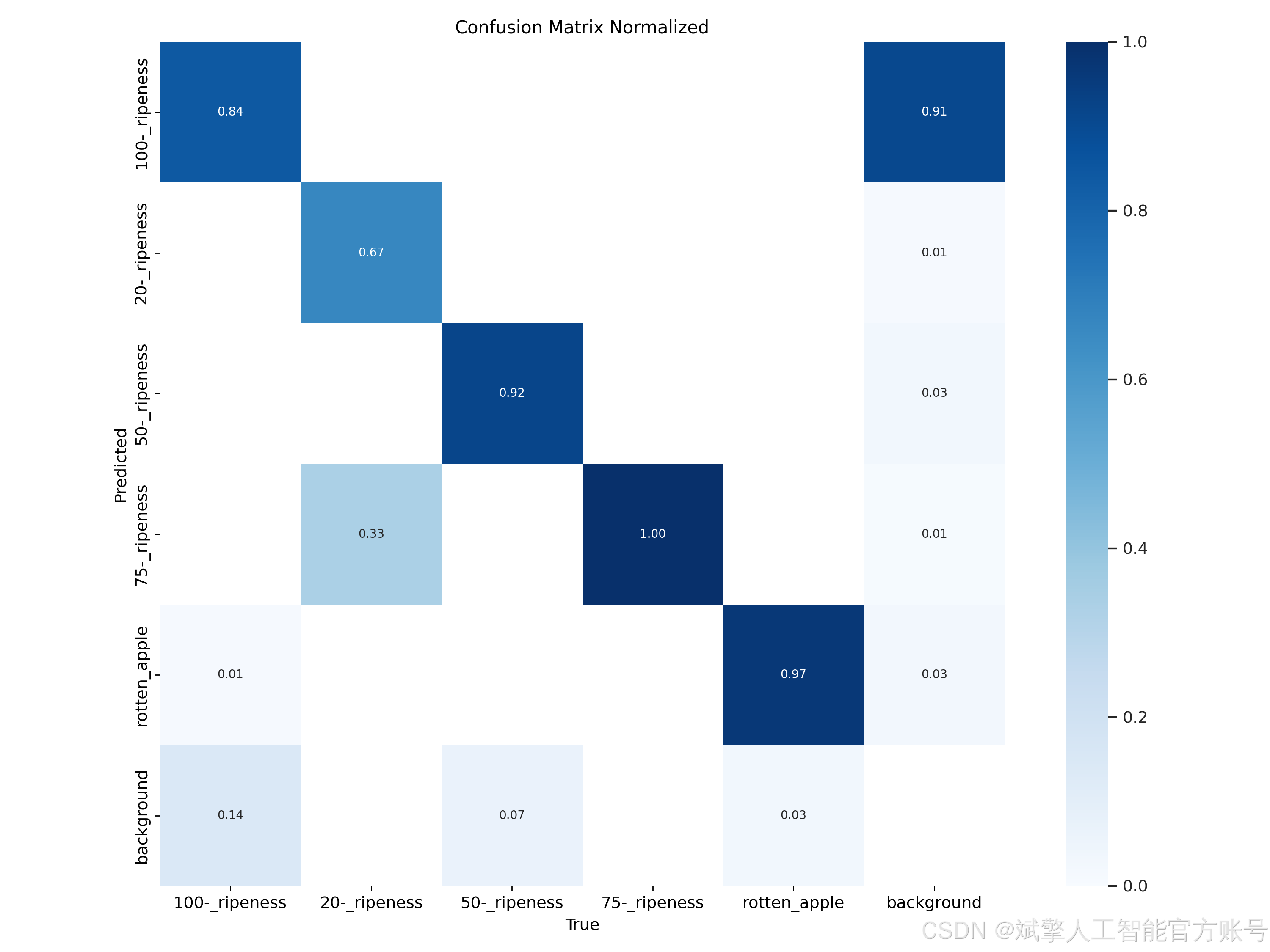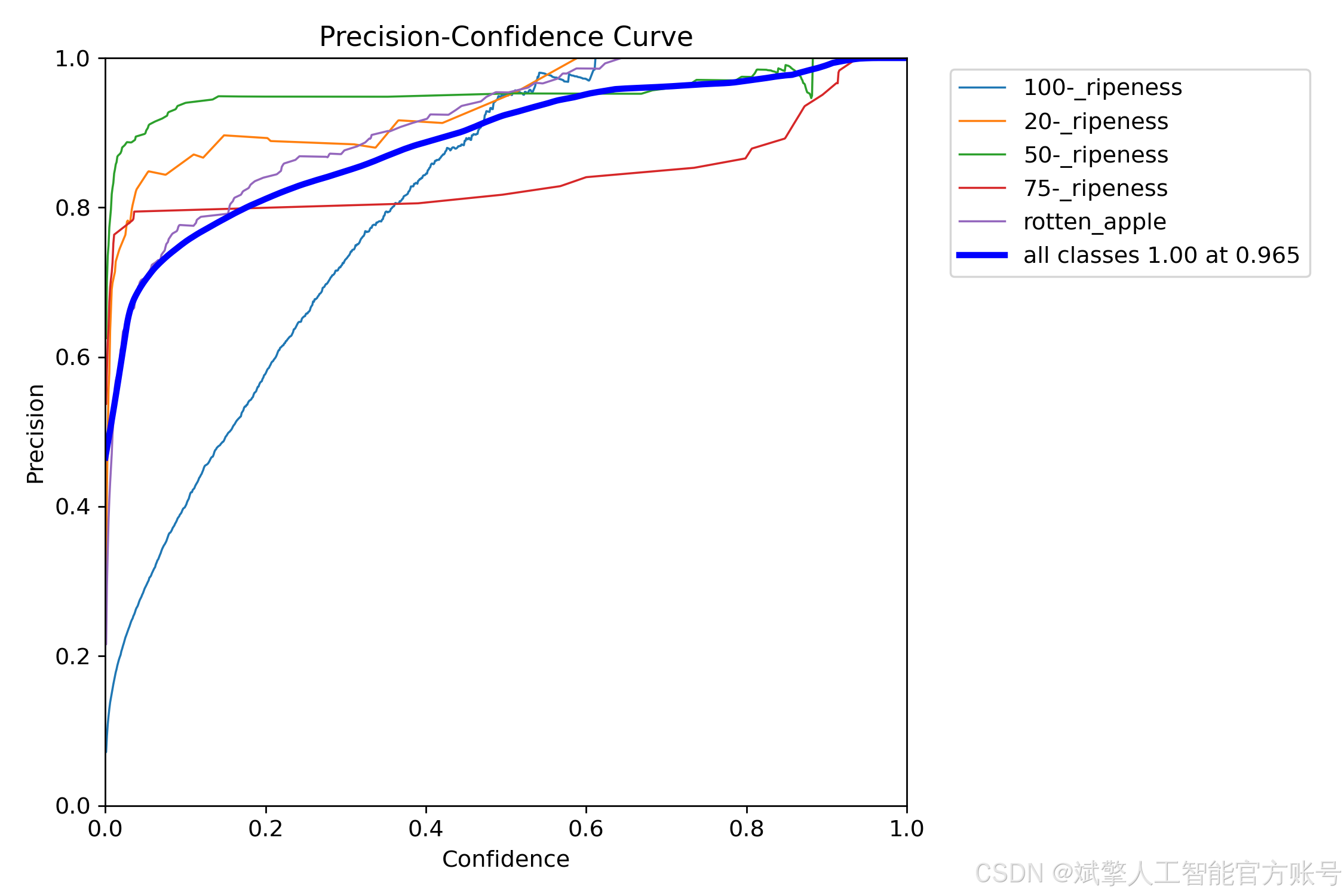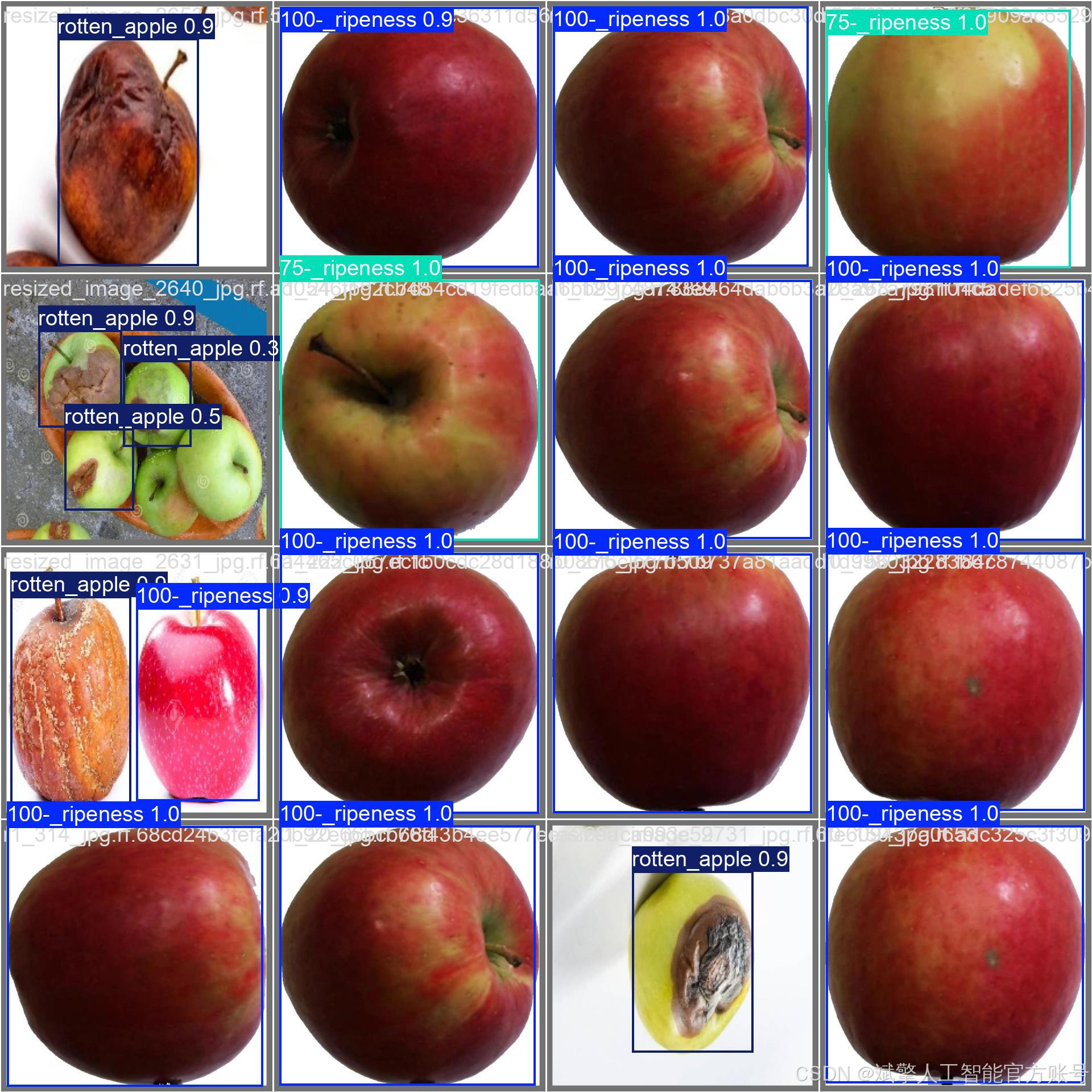 苹果成熟度检测在农业自动化、智能采摘和供应链管理中具有重要意义。传统依赖人工观察或机械传感器的方法效率低、成本高,且易受主观性影响。近年来,基于深度学习的目标检测技术(如YOLO系列模型)在农业领域展现出巨大潜力,但其在细粒度成熟度分类(如20%、50%、75%、100%成熟及腐烂)中的应用仍需进一步优化。