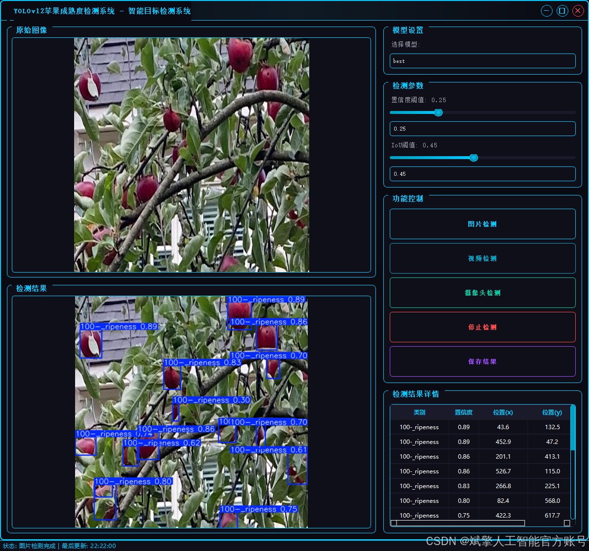 关键词:YOLOv12;苹果成熟度检测;深度学习;农业自动化;用户界面