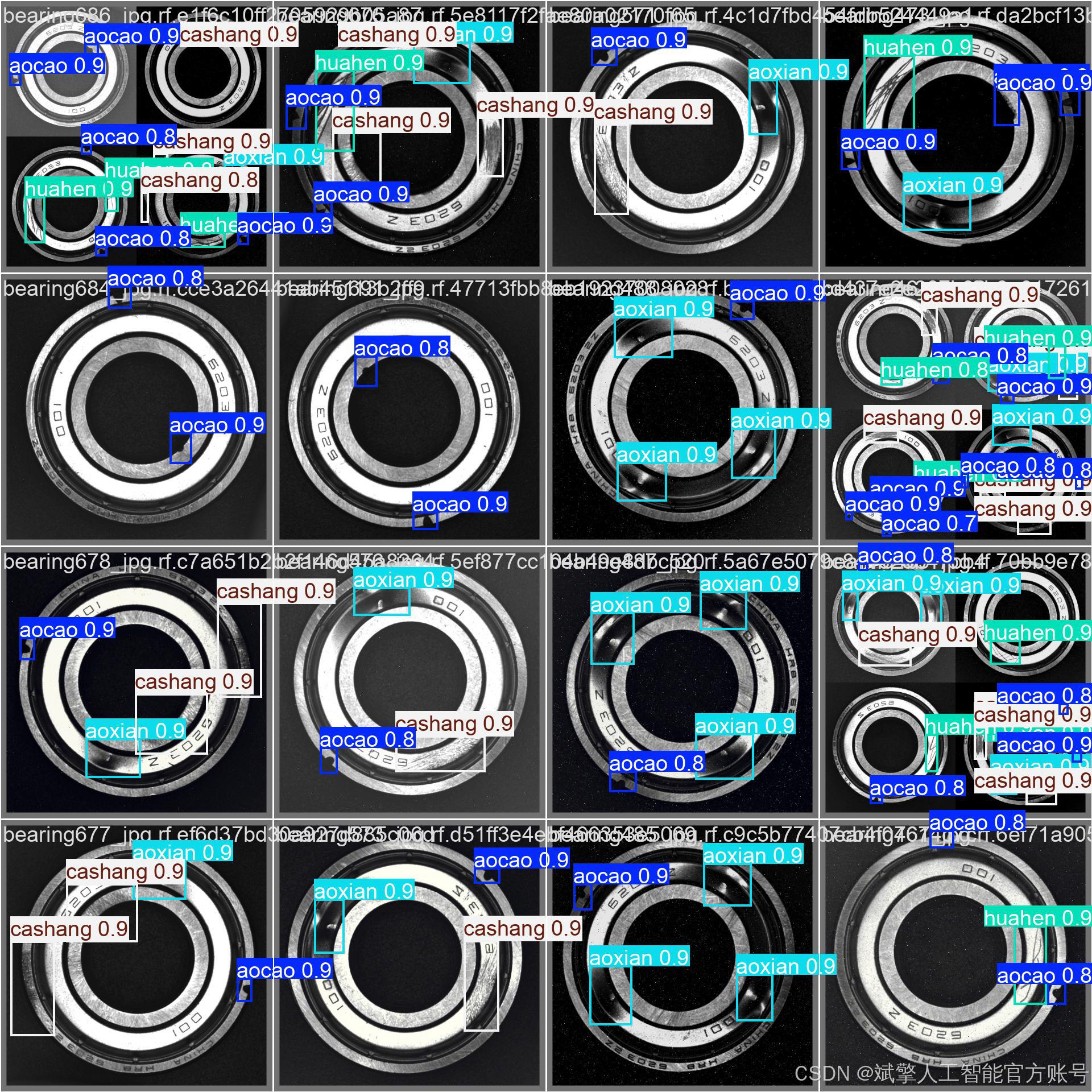 轴承在机械传动系统中承担着支撑和减少摩擦的重要作用,其表面缺陷(如凹槽、凹陷、擦伤、划痕等)可能导致设备故障甚至安全事故。传统轴承缺陷检测主要依赖人工目检或基于图像处理的半自动方法,但存在检测效率低、漏检率高、依赖经验等问题。近年来,深度学习技术在目标检测领域取得了显著进展,尤其是YOLO(You Only Look Once)系列算法以其高效性和准确性广泛应用于工业缺陷检测。