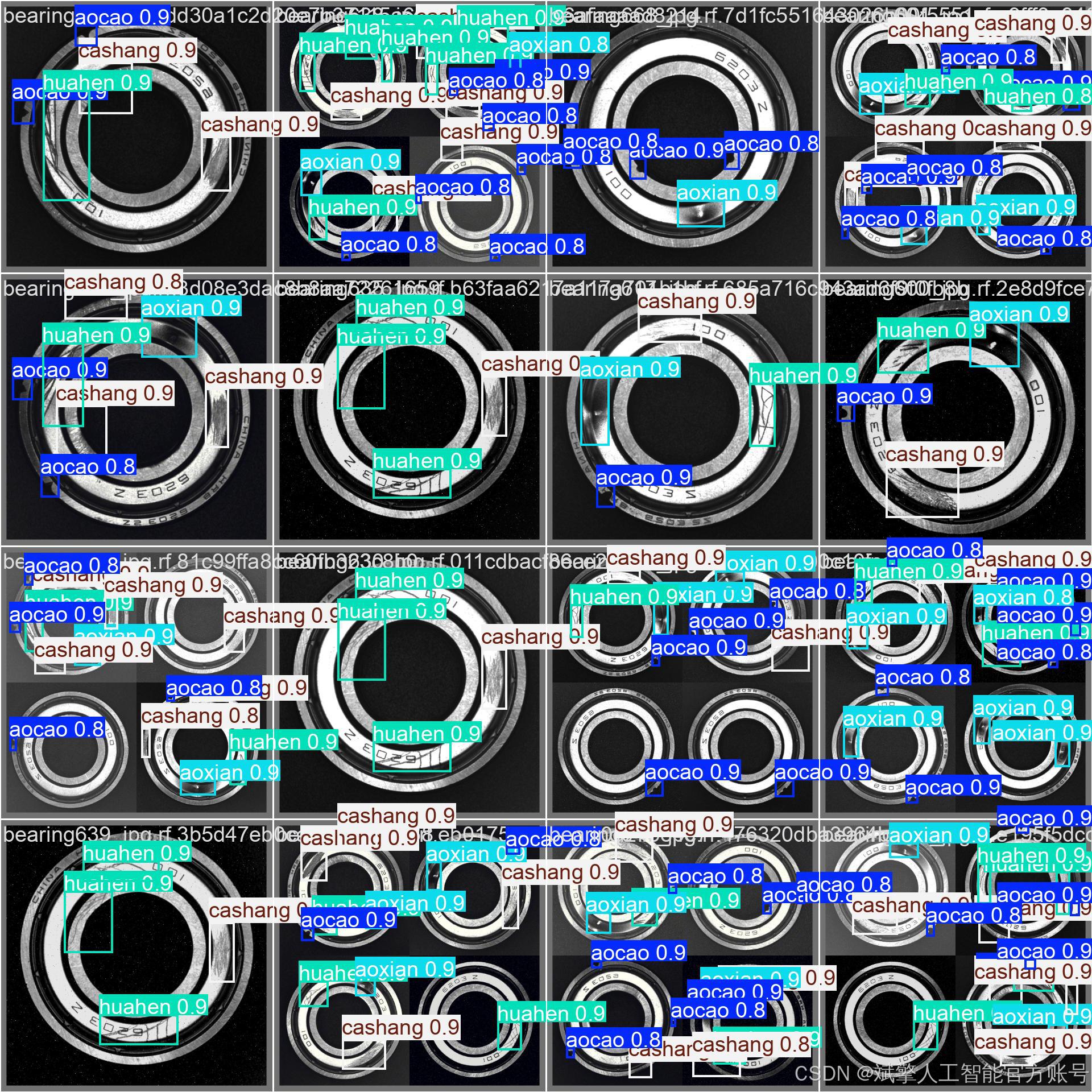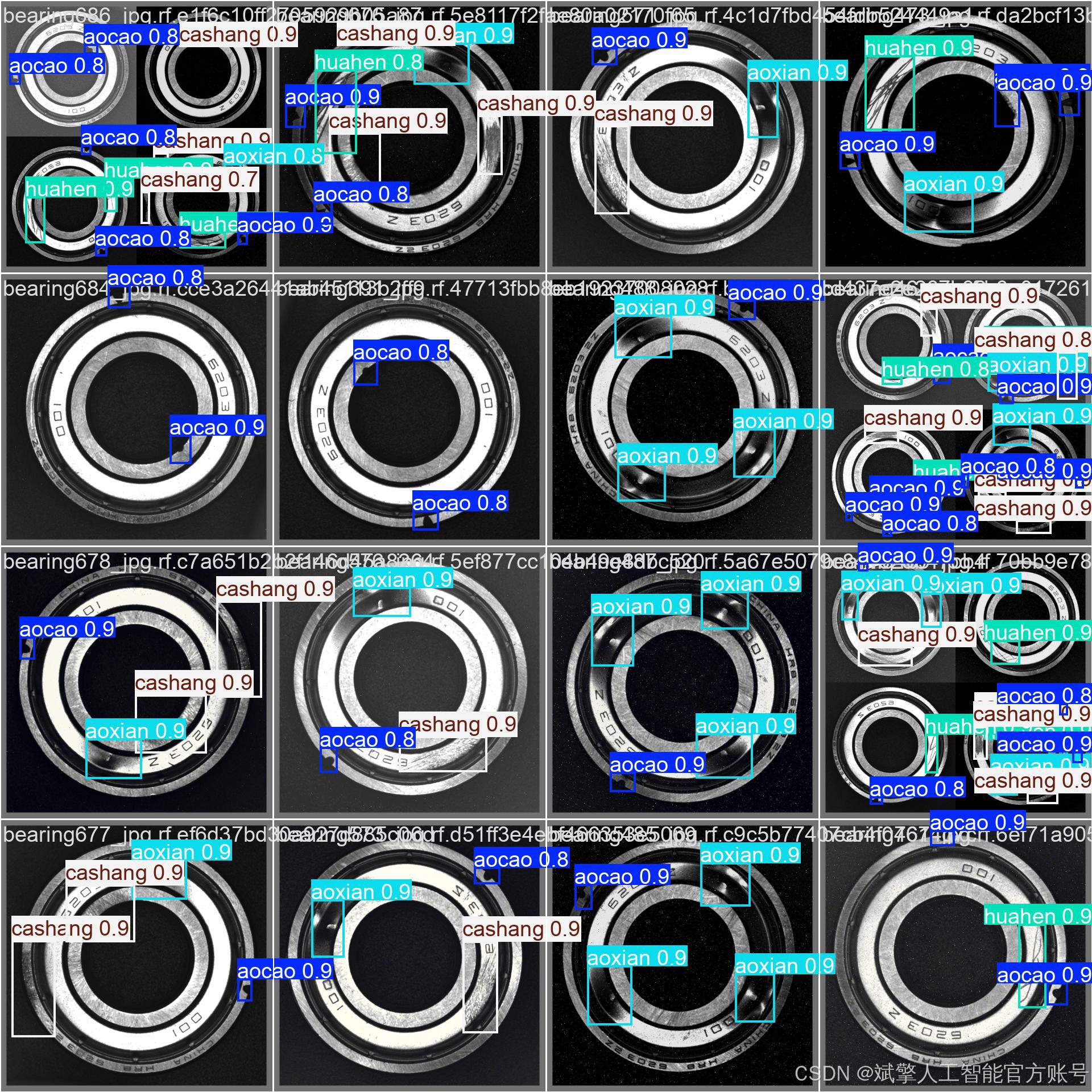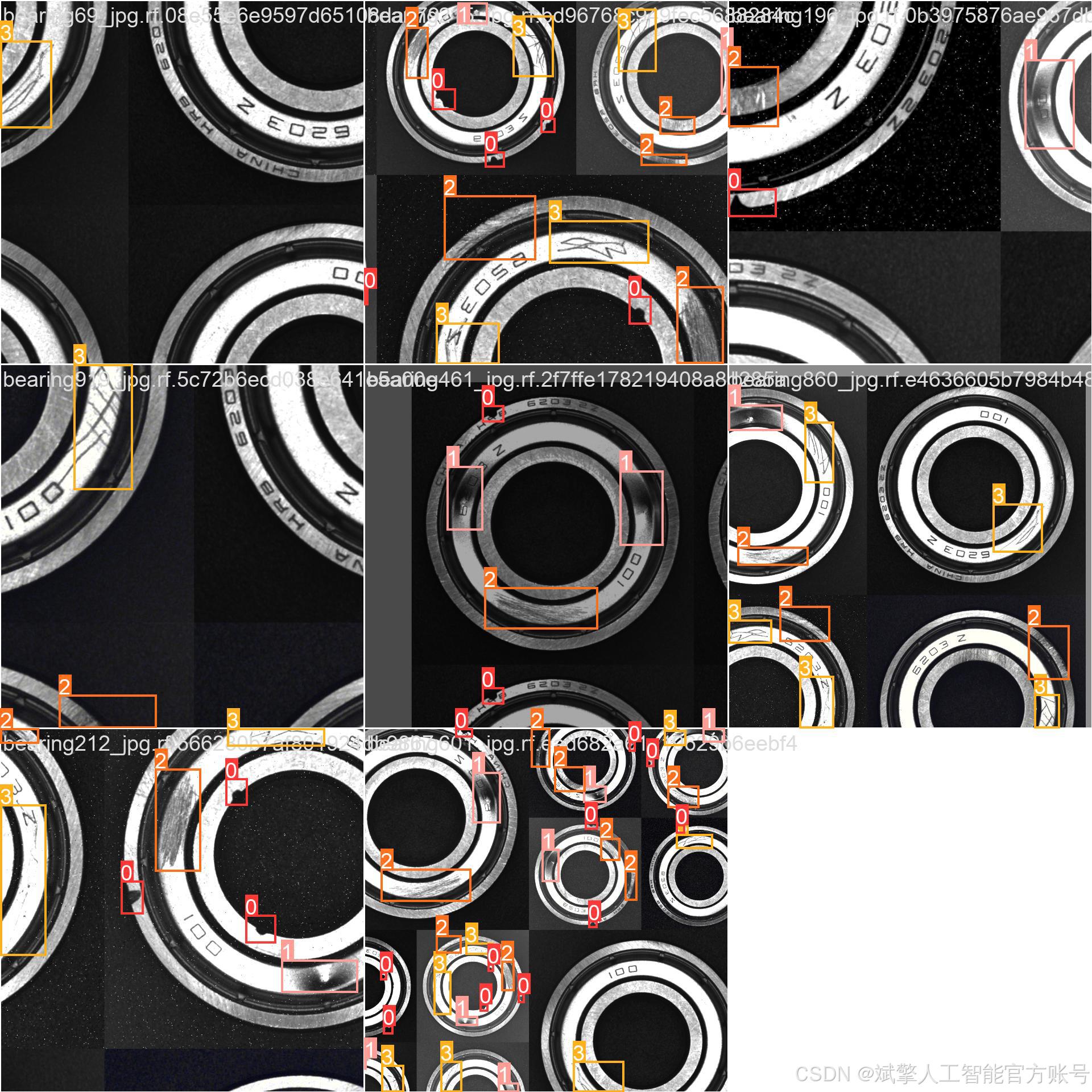 轴承作为机械设备的核心部件,其表面缺陷直接影响设备寿命与运行安全。传统人工检测存在效率低、主观性强等问题,而基于深度学习的视觉检测技术为解决这一难题提供了新思路。YOLO系列算法因其实时性与高精度在工业检测中广受关注,但现有研究多集中于通用场景,针对轴承多类缺陷的定制化检测系统仍待探索。