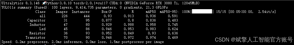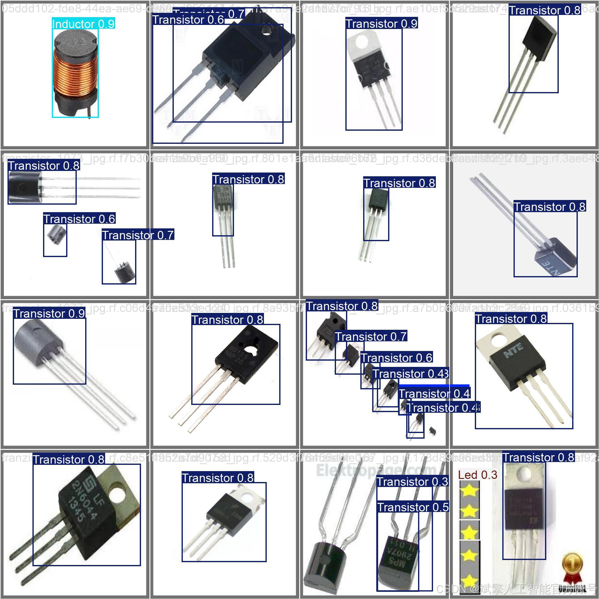 本文基于YOLOv11模型构建了一套端到端的电子元器件检测系统,针对五类常见元器件(Capacitor、Inductor、Led、Resistor、Transistor)进行优化。系统采用分层设计:1)后端使用YOLOv11实现高精度检测,结合迁移学习解决小样本数据(总样本2426张)下的模型泛化问题;2)前端开发交互式UI界面。项目开源完整代码与数据集,旨在为相关研究提供基准支持。实验结果表明,该系统在复杂背景和小目标检测场景中表现优异,验证了深度学习在电子元器件自动化识别中的实用价值,为工业4.0背景下的智能检测提供了可扩展的技术框架。