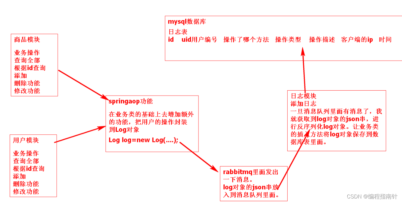 - LogAspect中准备log对象的各个属性值。封装到log对象里面。把log对象转换为一个json串,通过rabbitmq的生产者代码把json串作为一个消息发给rabbitmq的消息队列。