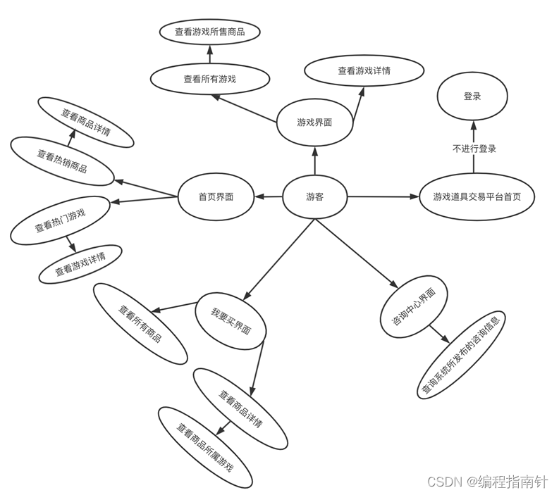 (1)游客:游客使用的是游戏道具交易平台的前台系统,当游客进入系统会首先到达系统首页