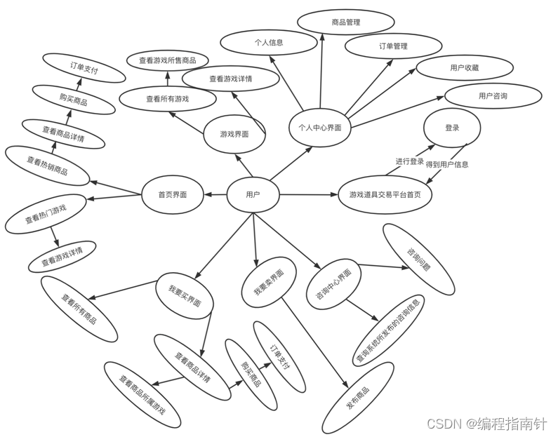 (2)用户:用户使用的是游戏道具交易平台的前台系统,当用户进入系统会首先到达系统首页,用户拥有游客的所有功能