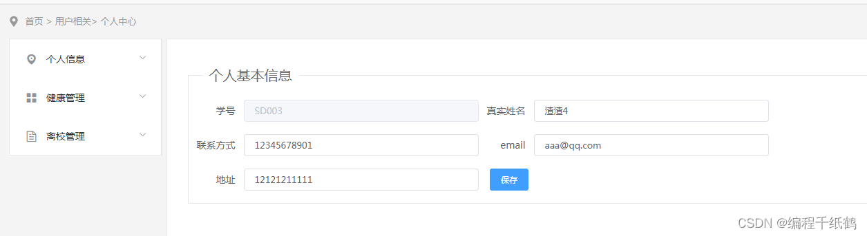 学生和老师登陆疫情管理系统后,可以在个人中心处修改自己的信息。具体操作界面如下图4-18所示: