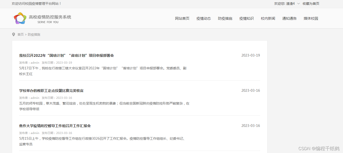 防疫措施管理主要对学校在疫情期间采取的疫情措施,进行相关的信息管理工作。界面展示如下图4-2所示: