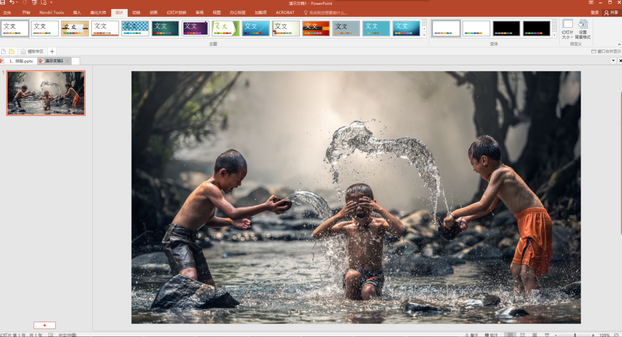 方法1:下载高清大图,插入到PPT调整尺寸到刚好铺满整页PPT,在PPT中间位置再输入文字内容,一张漂亮的封面图即制作出来。
