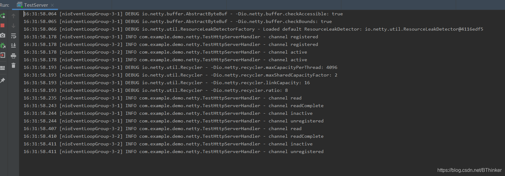 注意:childHandler(new TestServerInitializer()) TestServerInitializer是自定义的Channel的处理器。