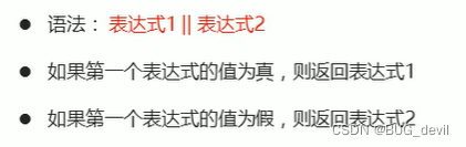 // 4. 逻辑或短路运算 如果表达式1 结果为真 则返回表达式1; 如果表达式1为假 那么返回表达式2