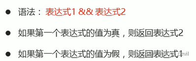 // 3. 逻辑与短路运算 如果表达式1 结果为真 则返回表达式2; 如果表达式1为假 那么返回表达 式1