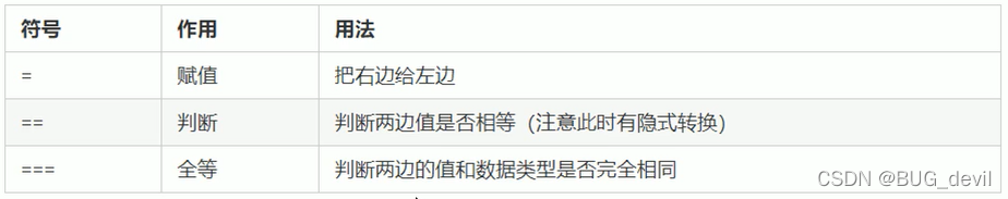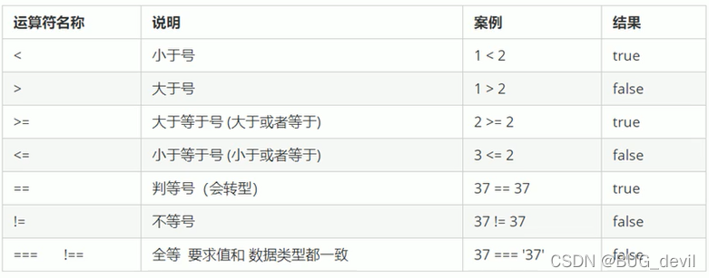 比较运算符(关系运算符) 是两个数据进行比较时所使用的运算符,比较运算后,会返回一个布尔值(true/false)作为比较运算的结果