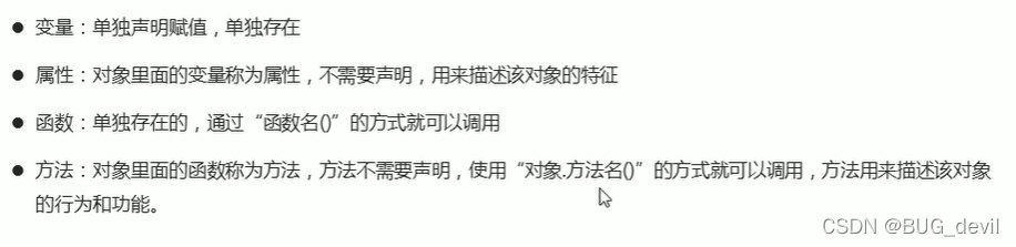 // 属性 在对象里面的不需要声明 使用时必须是 对象.属性