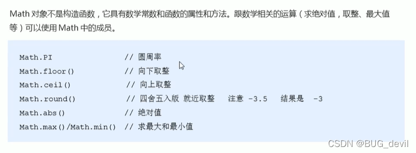 内置对象就是指JS语言自带的一些对象,这些对象供开发者使用,并提供了一些常用的或者最基本而必要的功能(属性和方法)。Math、Data、Array、String等