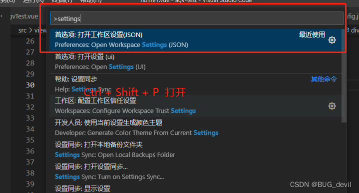 在vscode中 ctrl+shift+p在命令面板中输入settings.json后输入代码