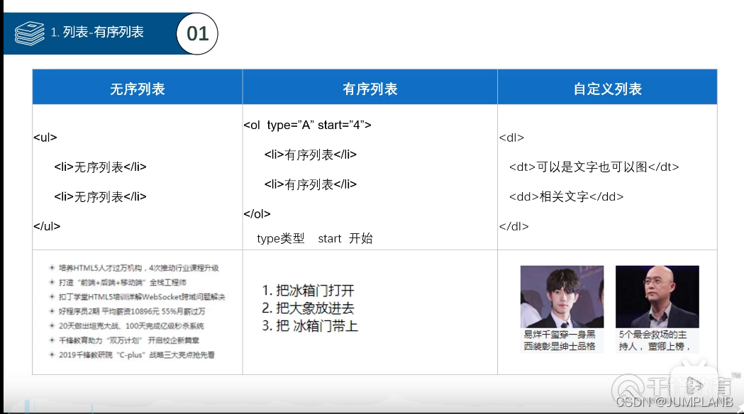 <!-- li里面可以随便加标签,但是ol只可以和li链接