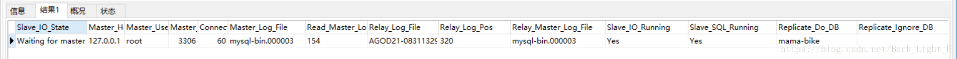 change master to master_host='127.0.0.1',master_port=3306,master_user='root',master_password='root',master_log_file='mysql-bin.000001',master_log_pos=154;