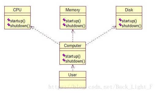 假设一台电脑,它包含了 CPU(处理器),Memory(内存) ,Disk(硬盘)这几个部件,若想要启动电脑,则先后必须启动 CPU、Memory、Disk。关闭也是如此。但是实际上我们在电脑开/关机时根本不需要去操作这些组件,因为电脑已经帮我们都处理好了,并隐藏了这些东西。