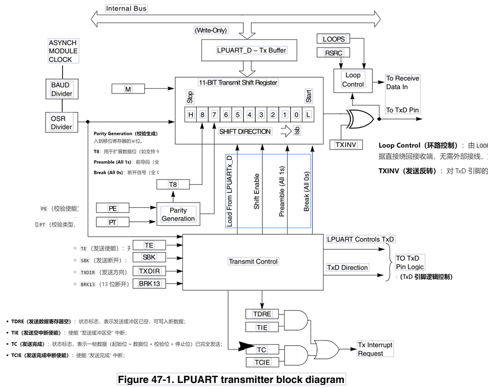 LPUART 发射器框图