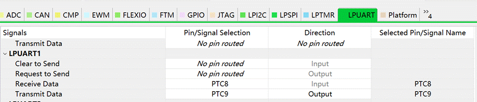 进行 pin 配置,我的板子是 PTC8 和 PTC9
