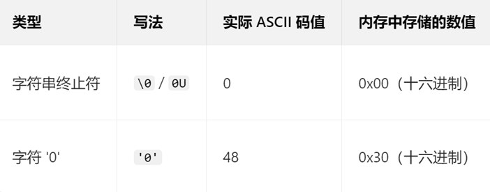 '\0' 和 '0' 的区别