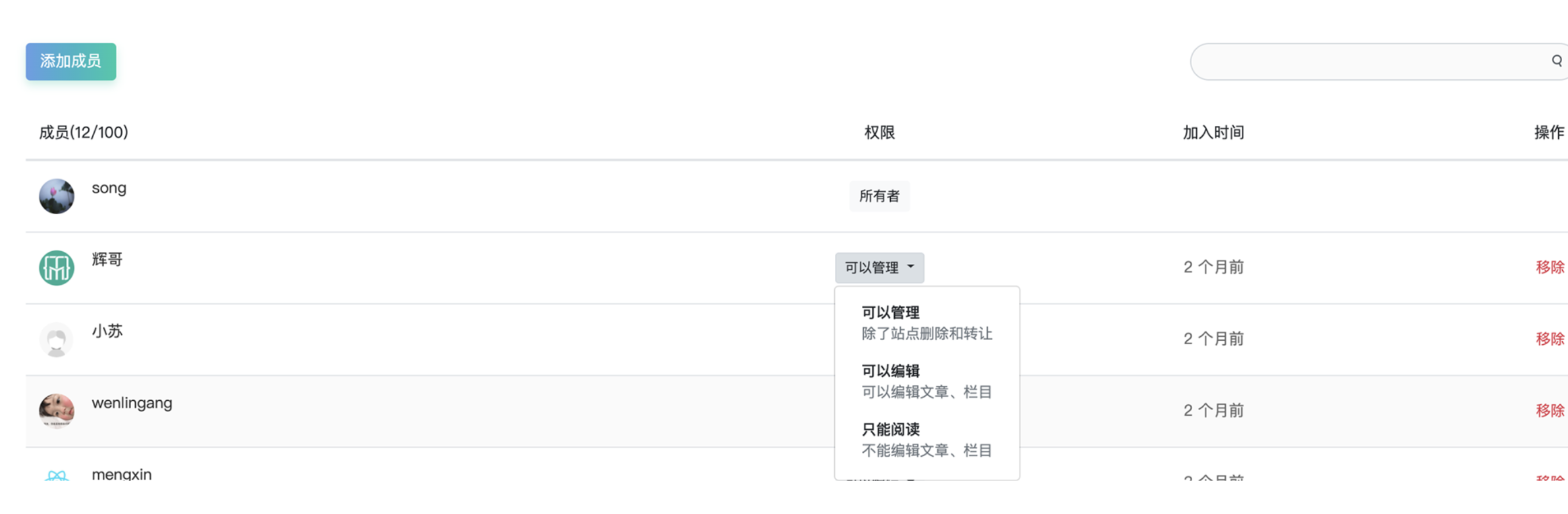 Baklib支持多人协同编辑,最多支持200人同时编辑,管理员可为每个协作成员添加不同的权限,且每一篇文章都会显示被被哪些人员所编辑。