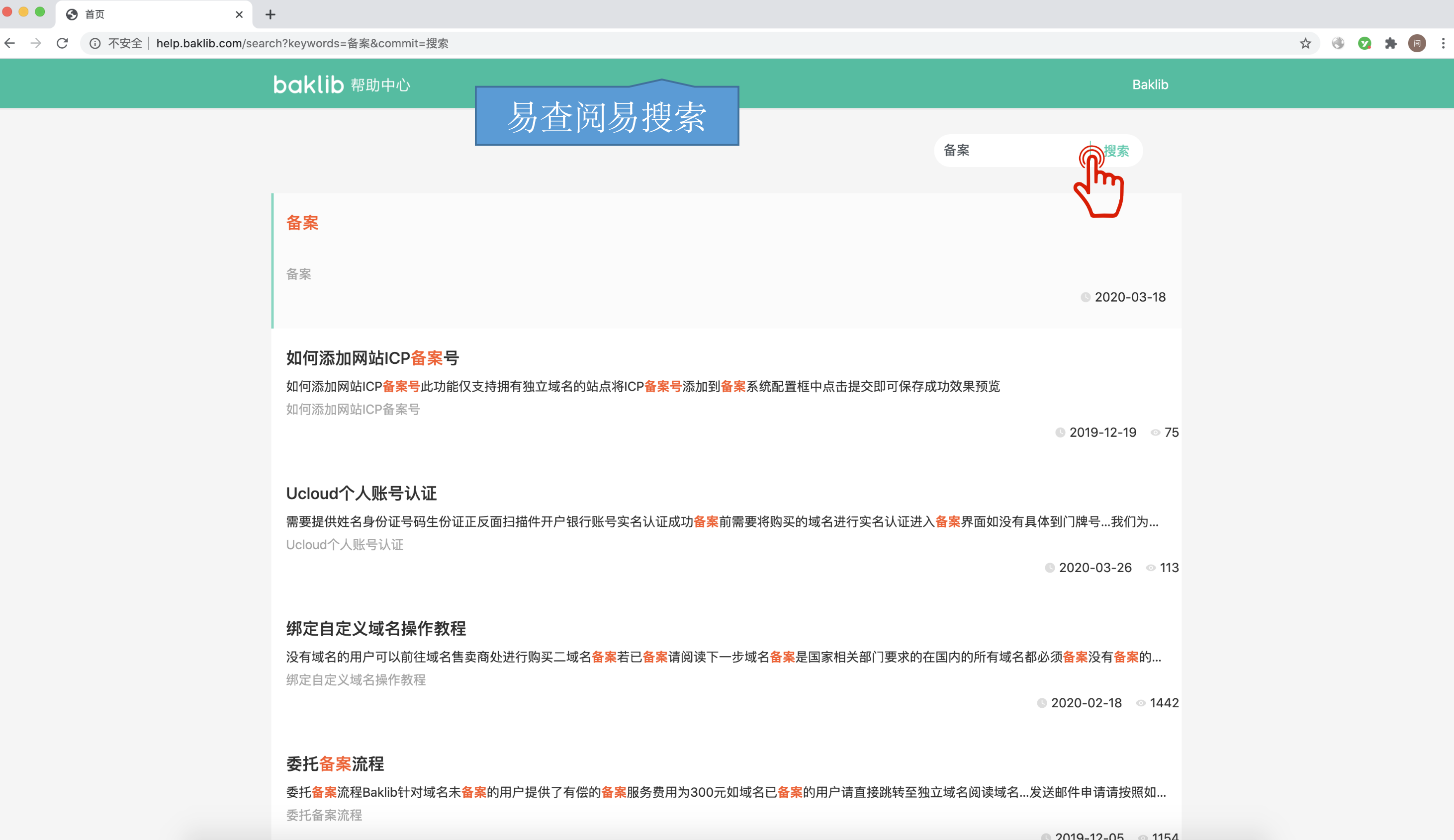 使用Baklib制作的知识库,最终会展示成为网页的样式方便查阅(通过站点权限配置可自由控制访问人群),在搜索上Baklib提供了全局检索和结果高亮的功能,帮助用户快速找寻使用难题。