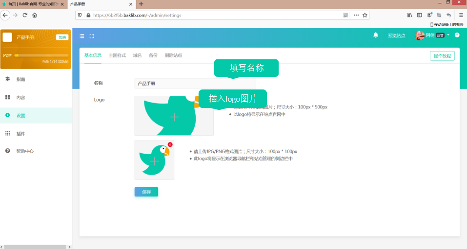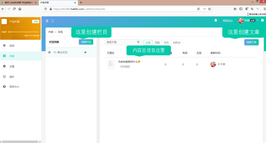 使用Baklib,只需要四步就能够搭建一个知识库进入官网www.baklib.com,注册登录账号1.新建站点2.添加内容,栏目分类添加知识库内容3.站点信息设置,设置站点的名称、logo、主题样式等,生成简约美观的界面4.制作出来的知识库效果如下图,制作出来的是一个单独的网站,可以将网站链接分享到各个平台,只需要点开链接就能访问