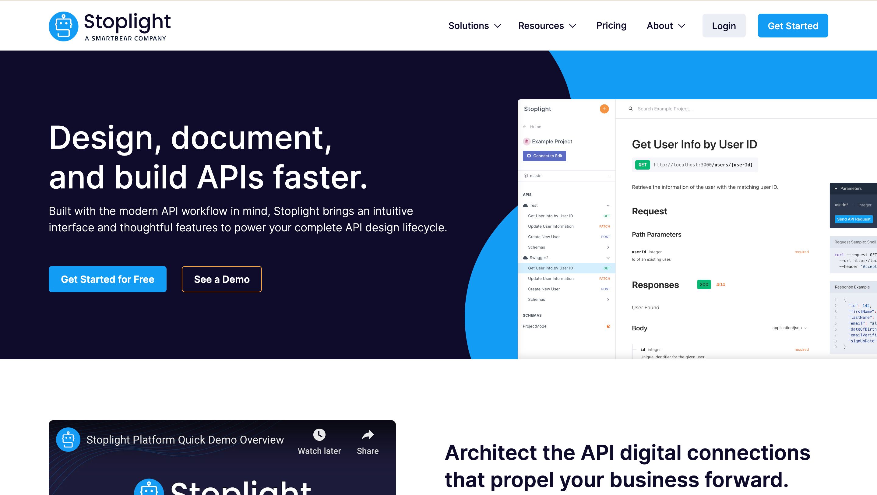 Stoplight平台专注于标准化、质量控制和治理,帮助设计、开发和记录API。它是本列表中独特的API文档工具,因其强大的API设计功能而脱颖而出。Stoplight鼓励使用其样式指南采用“设计优先”的API开发方法。