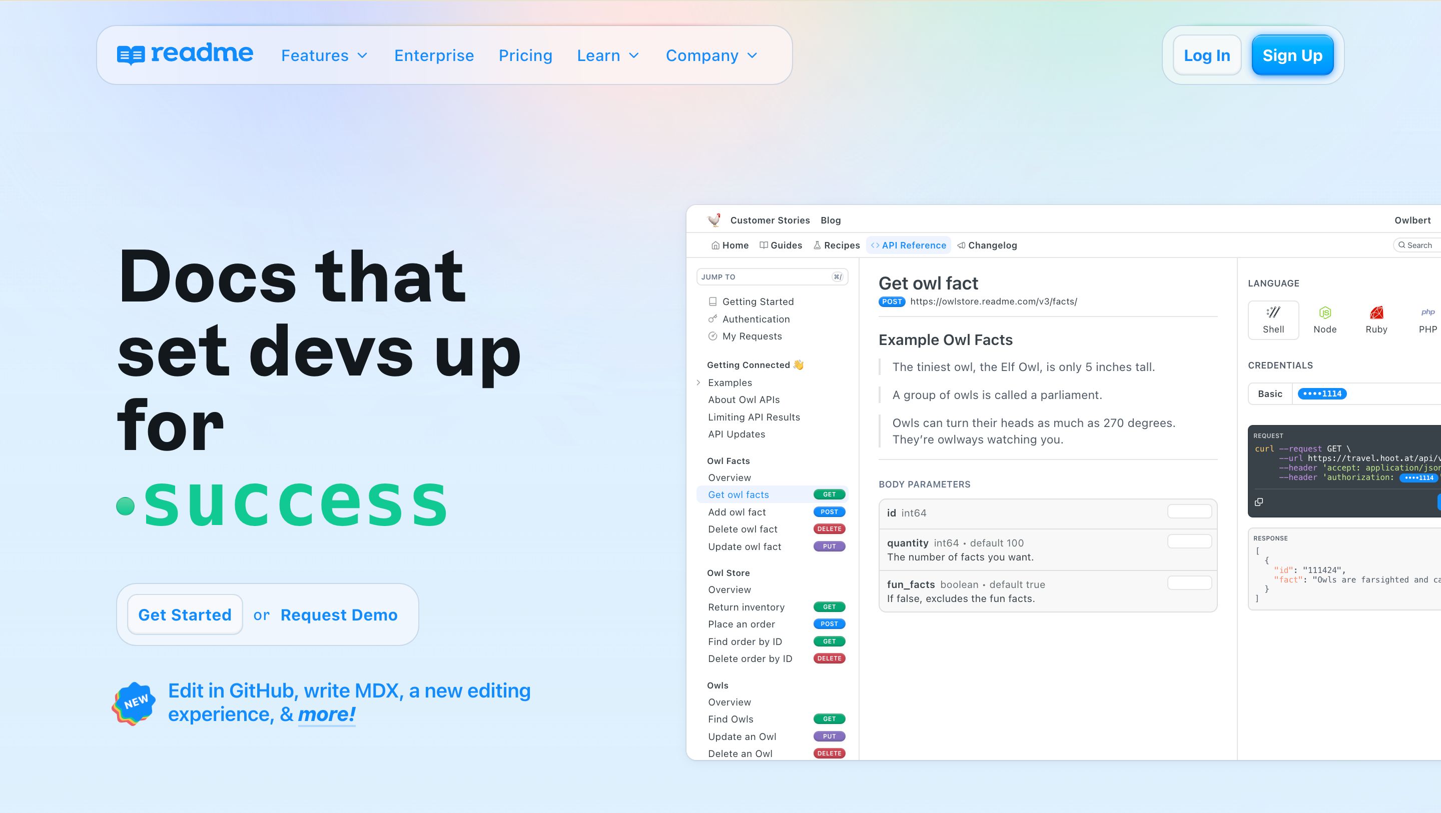 ReadMe是一个面向业务的平台,专为构建交互式API中心和提升API使用体验而设计。ReadMe的目标是通过将API使用数据与文档指标相结合来改善开发者体验,创建一个有助于提升质量的反馈循环。