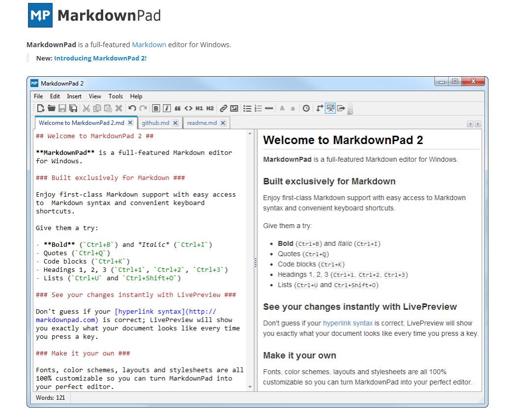 MarkdownPad 是一款简单易用的免费 Markdown 文本编辑器。其直观界面配有实时预览窗口,您可以看到 Markdown 的实际效果。该平台虽不能帮您生成文本或发布网站,但确实简化了构建和编辑新文档的流程。通过编写自定义 CSS,您可以调整指南的样式和外观。此外,完成编码后,您可以将文件导出为 HTML 或 PDF 格式。