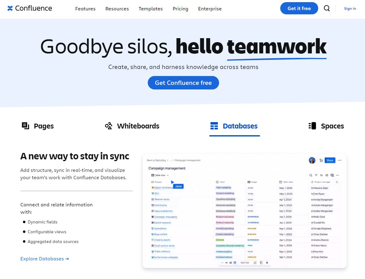 Confluence是项目管理软件和知识库构建工具之间一个有趣的混合体。Jira的创作者开发了Confluence,其主要特点是它可以与Jira集成,因此您可以构建一个直接链接到开放项目的知识库。这意味着您可以建立一个中心枢纽,将工作进度表、营销计划与标准操作流程(SOP)和品牌指南放在一起。