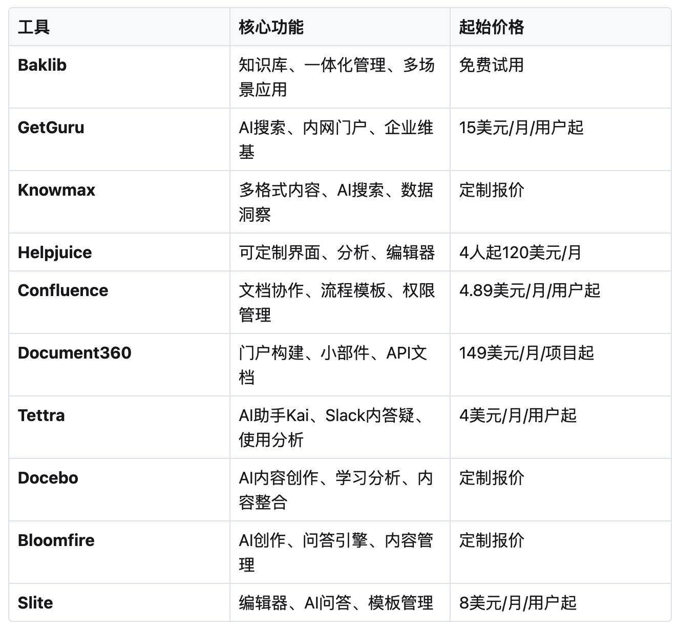我们对市面上的热门知识管理平台进行了系统盘点,涵盖核心功能与定价策略对比: