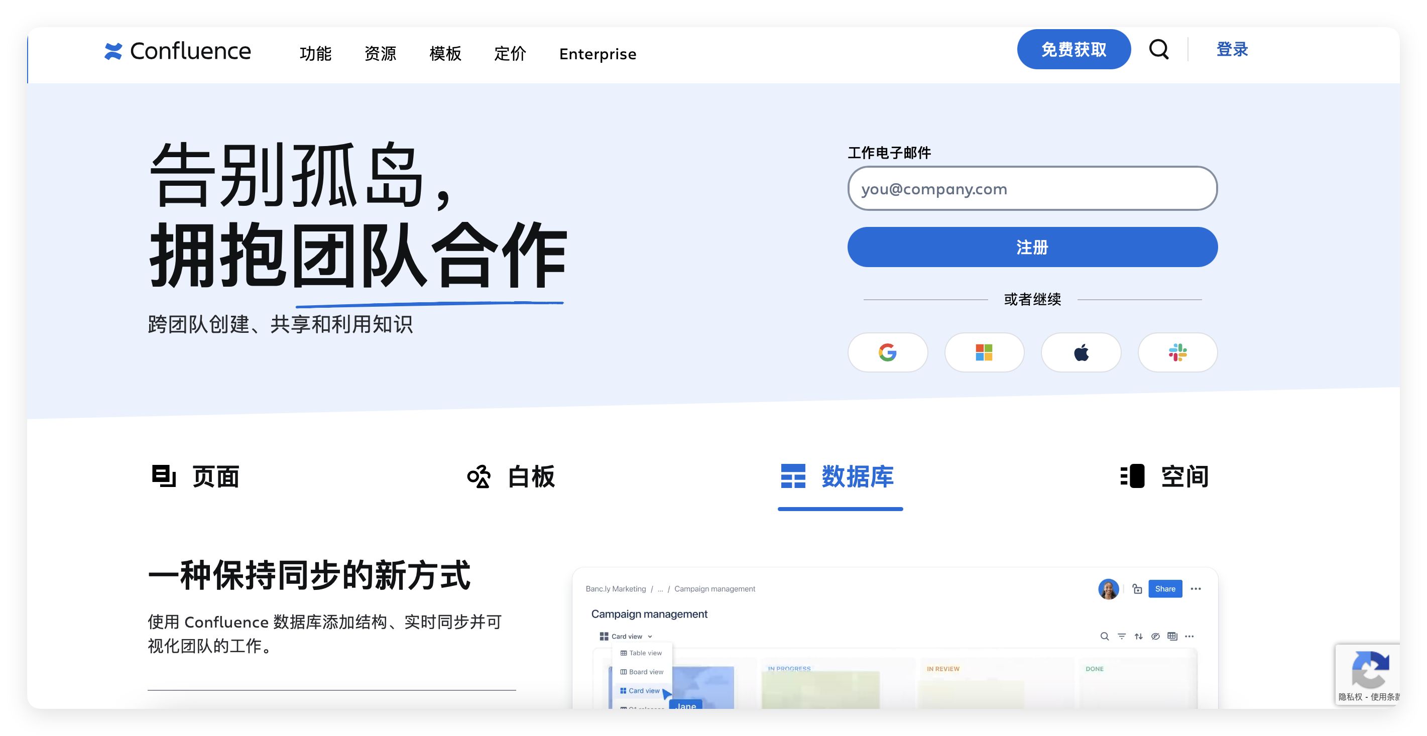 Atlassian公司推出的Confluence是一个知识管理平台,能够实现高效的企业级协作。