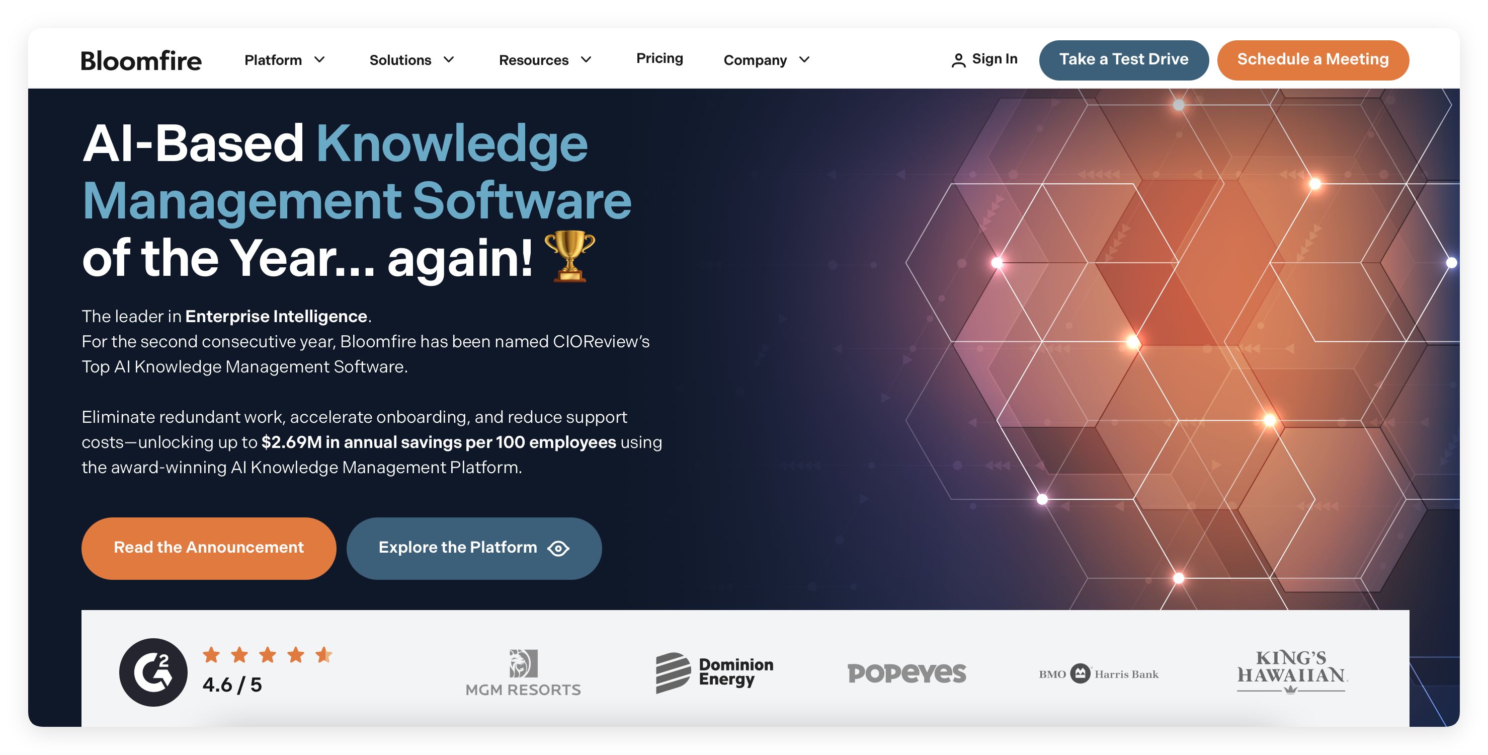 Bloomfire 是一款知识共享与协作平台,旨在帮助团队和组织高效捕获、共享并利用知识。