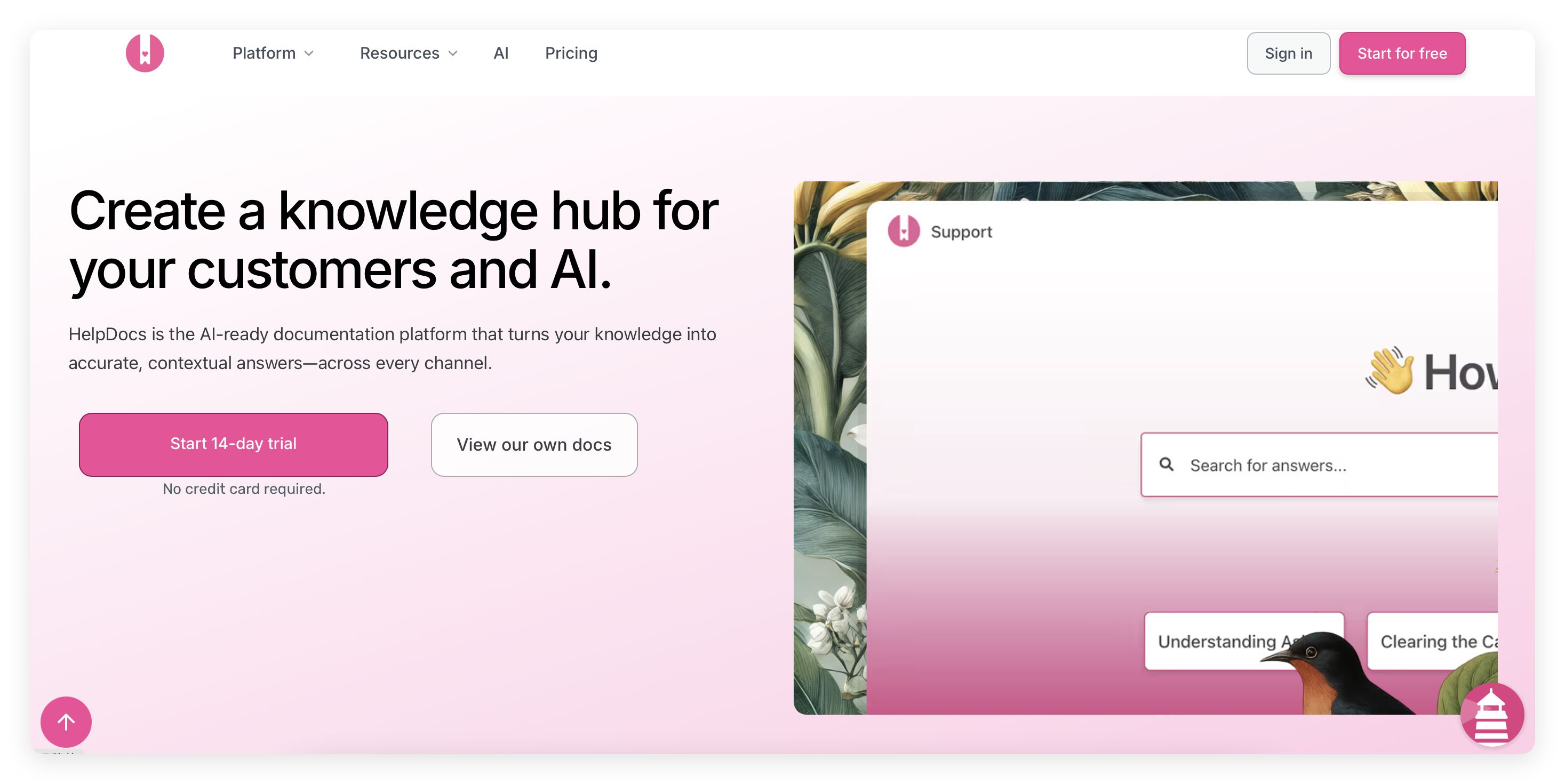 定价: HelpDocs基础版套餐价格为49美元/月,支持5个用户。